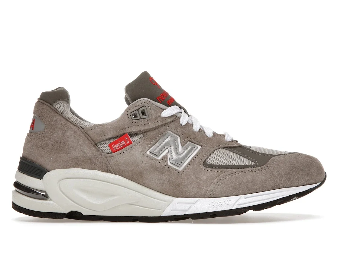 The New Balance 990v2 Version 2 is a sleek and stylish sneaker that combines comfort and performance. Made with premium materials, this shoe features a suede and mesh upper in a classic grey colorway. The ENCAP midsole provides superior cushioning and support, while the rubber outsole offers excellent traction and durability. The release date for this shoe is June 17, 2021, and it retails for $185. Whether you're hitting the gym or running errands, the New Balance 990v2 Version 2 is the perfect choice for those who demand both style and substance in their footwear. Get yours today and experience the ultimate in comfort and performance. - Style M990VS2 - Colorway Taupe/White/Grey - Retail Price 185 - Release Date 2021-06-17 - Featured false