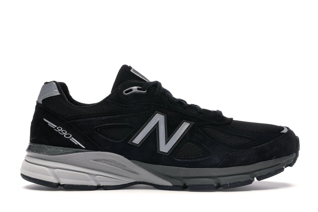 The New Balance 990v4 Kith Black is covered in two color tones in its meshed and leather design and was released as part of a shock release collection in 2018. The 990v4 Kith Black features a prime pigskin suede upper accented with a completely porous mesh vamp. A black hue dresses most part of the upper and is blended with a silver color on the N emblem, the forefoot, and atop the heel tab. Completing the structure of the sneakers is a dual-density collar foam as well as an ENCAP midsole integrated with an ENCAP PU ring with EVA and a puff outsole. The New Balance 990v4 Kith Black was released on August 21st, 2018, and retailed at $175. - Style M990BK4 - Colorway Black/Silver - Retail Price 175 - Release Date 2018-08-21 - Featured false