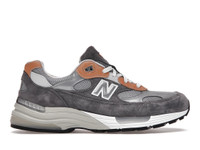 To celebrate his 10th anniversary in business, Todd Synder teamed up with New Balance in releasing the New Balance 992 Todd Snyder 10th Anniversary. The sneaker features an upper covered with tanned leather overlays in grey and a breathable meshed vamp, while at the same time presenting a contrast with subtle accents of soft tangerine on eyelets, USA embroidery atop the tongue, and the heel tab. Apart from that, a silver shade can be seen on the N emblem on the side panels and the NB signature brand on the heel stabilizer. Finishing off the shoe is a white stacked cushioning midsole. The New Balance 992 Todd Snyder 10th Anniversary was released on January 12th, 2021, and retailed at a price of $240. - Style M992TA - Colorway Grey/White/Tan - Retail Price 240 - Release Date 2021-12-01 - Featured false