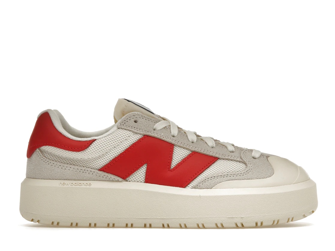 The New Balance CT302 Sea Salt True Red is a court-inspired sneaker from the New Balance CT302 collection in a ‘Sea Salt True Red’ colorway. This sneaker features a mesh and suede upper with a Sea Salt White mesh base on the quarter panel extending to the collar and Light Grey suede overlays. Hits of True Red on the oversized ‘N’ logo and the heel tab highlight the upper. Other details include a White rubber toe cap, Blue detailing on the tongue branding, and White laces. A Sea Salt White chunky outsole with EVA foam cushioning completes the design. The New Balance CT302 Sea Salt True Red was released on July 19th, 2022, for a retail price of $90. - Style CT302RD - Colorway Sea Salt/True Red - Retail Price 90 - Release Date 2022-07-19 - Featured false