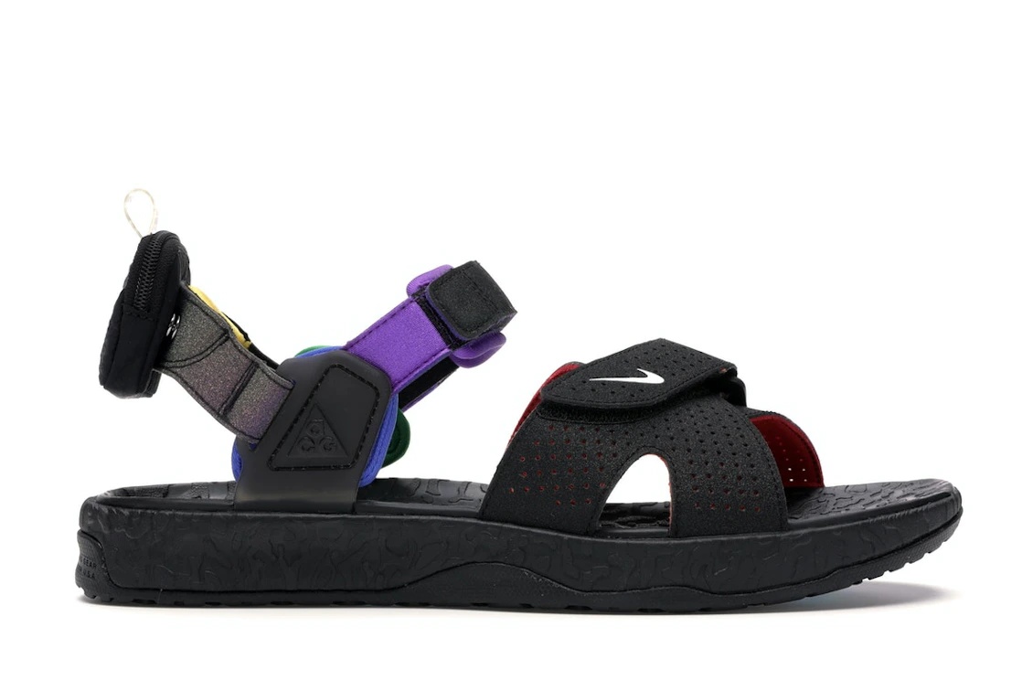 The Nike ACG Air Deschutz Be True 2020 was released as part of Nike’s Nike ACG Air Deschutz collection that features a line of all-weather sandals - hence the ACG acronym, which stands for "All Conditions Gear." The sandals feature a predominantly black color scheme with multi-color accents on the inner linings. The forefoot has a red lining, while the ankle straps feature a purple one on the front, green and blue on either side, and yellow on the heel strap. Other stand-out features on the shoe include the translucent heel tab with Be True branded across it, and the Nike Air logo with a pride flag behind the heel strap. What we love about the Nike ACG Air Deschutz Be True 2020 is the pride-themed color accents that celebrate diversity and inclusivity in society. The Nike ACG Air Deschutz Be True 2020 was released on June 22, 2020 for the price of $90. - Style CU9189-900 - Colorway Multi-Color/White - Retail Price 90 - Release Date 2020-06-22 - Included Accessories 2 Snap On Black Nike Heel Pouches - Featured false - Product Line Nike ACG