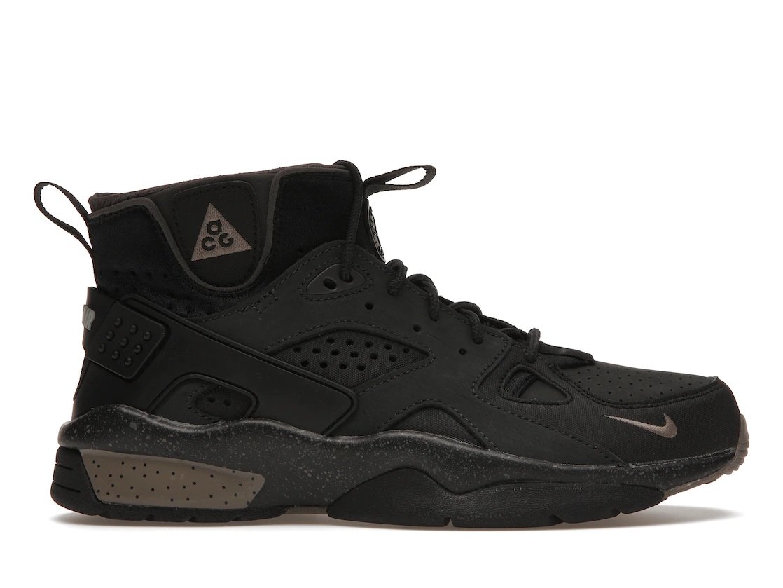 This Nike ACG Air Mowabb OG Olive Grey (2021) features a perforated nubuck upper construction with, a heel stabilizer, rope laces, a neoprene inner bootie, and a sock liner in the Huarache fashion. Additionally, it has the ACG logo on the ankle. The Mowabb's distinctive internal sleeve and a molded heel cage adapted from another Tinker Hatfield creation, the Huarache runner, is featured on the upper's layered design. This version includes a stretchier collar and webbing pull tabs. A foam off-noir hue midsole with specks serves as a lightweight cushion, and a 'leave no trace' rubber outsole is used to reduce foot traffic. The sneaker lateral mudguard is adorned with an olive grey mini swoosh, while the heel strap features a Nike text logo on it. Completing its appearance is the Huarache logo on its padded tongue. The Nike ACG Air Mowabb OG Olive Grey (2021) was released on 16th December 2021 and retailed at $160. - Style DM0840-001 - Colorway Off Noir/Olive Grey-Black - Retail Price 160 - Release Date 2021-12-16 - Featured false