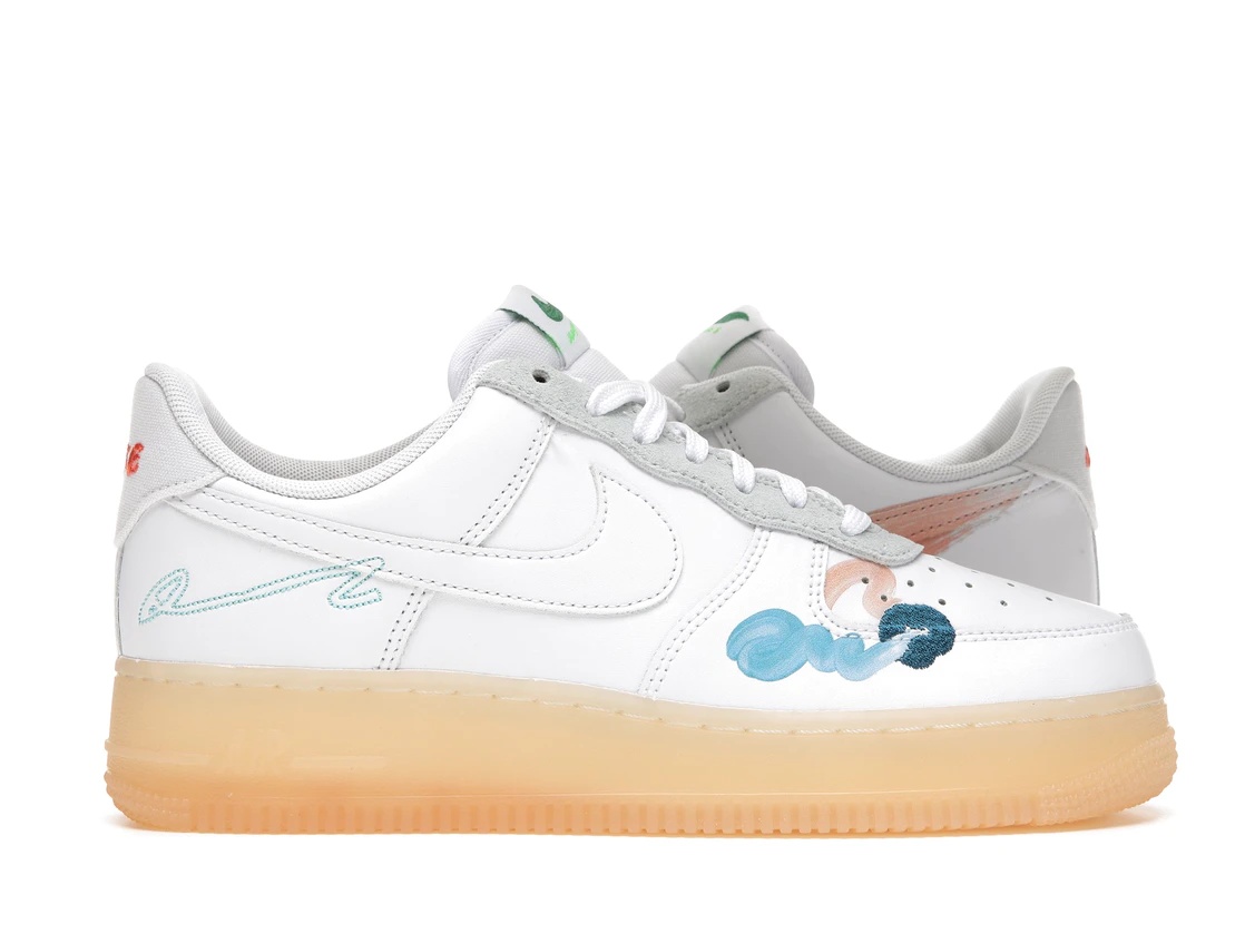 The Nike Air Force 1 Flyleather Mayumi Yamase White features a white Flyleather upper with grey Durabuck eyestays and multicolor brush stroke details, nodding to the artistic style of Mayumi Yamase. An aged translucent sole and light blue embroidery on the lateral heel complete the design. The Nike Air Force 1 Flyleather Mayumi Yamase White released in June of 2021 and retailed for $130. - Style DB3598-100 - Colorway White/White-White - Retail Price 130 - Release Date 2021-06-25 - Featured false