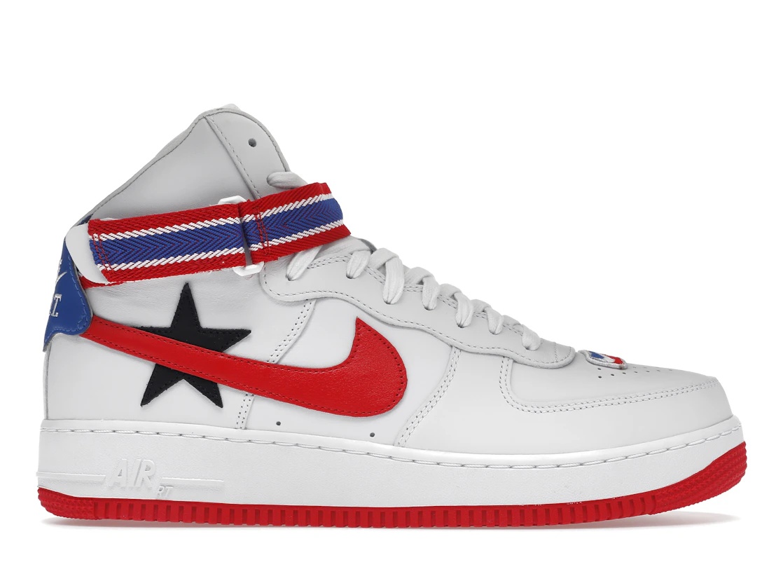This Nike Air Force 1 High was made in collaboration with Riccardo Tisci. A part of the "Victorious Minotaurs" Pack, they draw inspiration from the AF1s original roots as a basketball sneaker. This pair comes in a clean white, black, game royal and university red colorway. Sporting a white-based premium leather upper with red, black and blue accents. Details include: a custom patch on toe box that pays homage to the NBA logo, a black star on the heel with a red Swoosh over it, blue back heel tab, nylon ankle straps and "RT" on the midsole. Their release date was October 12th, 2017 where they were available at select NikeLab retailers worldwide. Priced at $275, they were available exclusively in men's sizes. Fans of Riccardo Tisci's work can add this Nike Air Force 1 High to their collection by buying a pair online today. Those that copped them on release day can hit up the marketplace and see what they're going for. Their re-sale value might entice you to sell. - Style AQ3366-100 - Colorway White/Black-Game Royal-University Red - Retail Price 275 - Release Date 2017-10-21 - Featured false - Product Line Nike Air Force