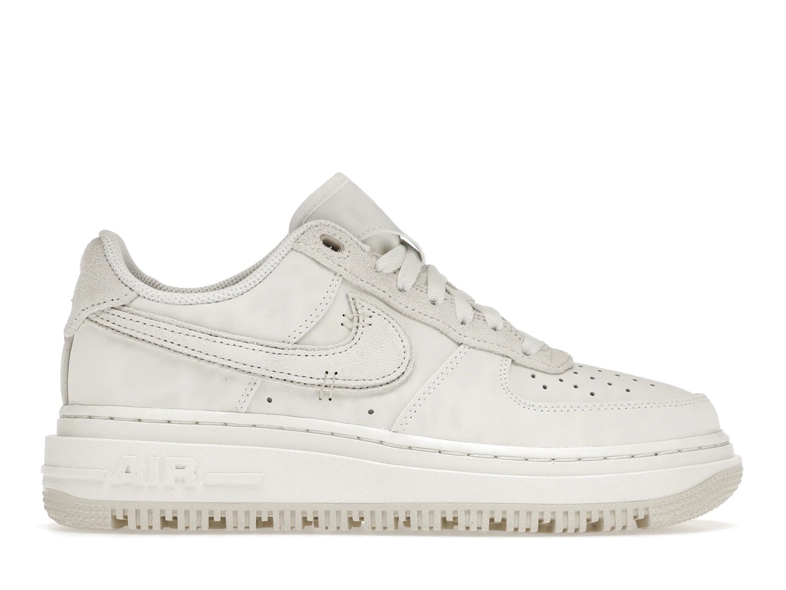 The Nike Air Force 1 Low Luxe Summit White Light Bone has a white leather upper with a cushioned mesh collar, wavy eye stays, and a perforated toe box. The rubber outsole, heel tab and "Air" branding on the midsole all have hints of Light Bone. The Nike Swoosh branding is printed on both sides of the sneakers and their heels. Additionally, it features a padded tongue, a round toe cap and rugged soles with Nike branding and a large Swoosh emblem on its laterals. Full-length AIR units are included on the soles. The Nike Air Force 1 Low Luxe Summit White Light Bone was released on February 16th, 2022, and retailed at $130. - Style DD9605-100 - Colorway Summit White/Summit White-Light Bone - Retail Price 130 - Release Date 2022-02-16 - Featured false