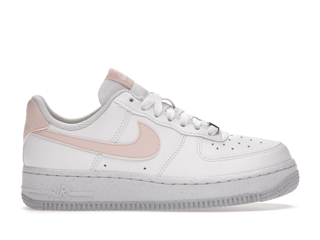 The Nike Air Force 1 Low Next Nature White Pale Coral (Women’s) is a special iteration of the legendary Air Force 1 silhouette. It was released as part of Nike’s Next Nature initiative, which means it is made from at least 20% recycled materials by weight. The upper of this Air Force 1 boasts a Flyleather construction, which is a sustainable material made from recycled leather fibers. It features a white color scheme complemented by shades of Coral which cover the Swoosh and branding details, adding a touch of color to the clean silhouette. The shoe also retains all the signature design elements like the perforated toe box, cushioned midsole, and distinctive tread pattern. What our experts love about the Nike Air Force 1 Low Next Nature White Pale Coral (Women’s) is the clean and minimalist aesthetic that makes the shoe versatile and easy to style with any outfit. The women’s sized shoe was released for retail in September 2021, priced at $95. - Style DC9486-100 - Colorway White/Black-Metallic Silver-Pale Coral - Retail Price 95 - Release Date 2021-09-02 - Featured false