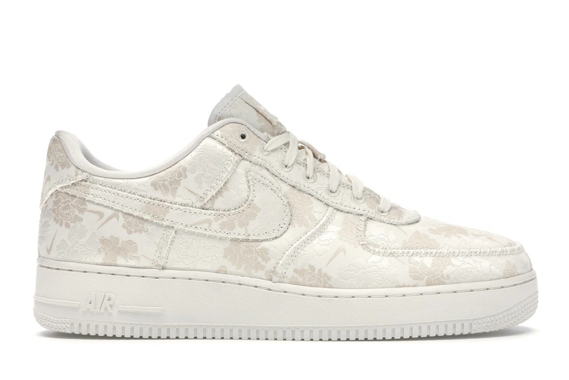The Nike Air Force 1 Low Satin Floral Pale Ivory is crafted from a satin material featuring an elegant floral pattern in soft pastel colors, creating a minimalist and refined look. The Satin Floral Pale Ivory Nike Air Force 1 Low showcases a creamy white hue that envelops the entire shoe, from the uppers to the outsole, creating a seamless and monochromatic look. The use of Air technology ensures comfort and cushioning for this lifestyle shoe. Branding elements include the classic AF1 emblems, including the swoosh on the lateral and medial sides, a swoosh in place of the heel’s "NIKE" wordmark, and the Nike Air tongue tag. What our experts love about the Nike Air Force 1 Low Satin Floral Pale Ivory is its floral pattern and the lustrous satin material. This unique combination sets the sneaker apart, infusing it with an elegant touch that's ideal for those who appreciate a blend of sporty style and luxurious aesthetics. The sneaker was released on the 1st of January 2019 for $130. - Style AT4144-100 - Colorway Pale Ivory/Guava Ice-Sail - Retail Price 130 - Release Date 2019-01-01 - Featured false - Product Line Nike Air Force