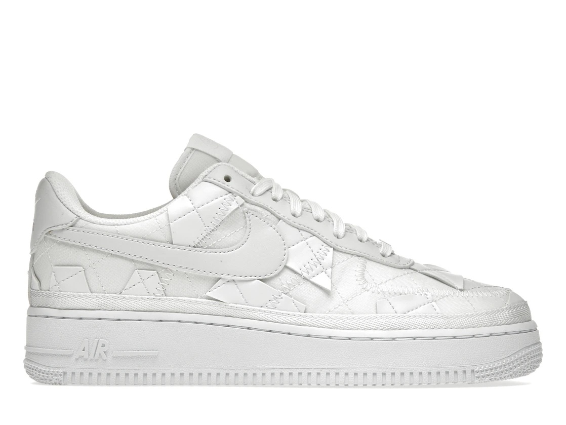 The Nike Air Force 1 Low SP Billie Eilish Triple White is clad in a single-color scheme that define its look – a white hue. This SP Billie Eilish Triple White Nike Air Force 1 Low sneaker has a clean and pure color scheme. The white fabric upper has been enhanced with a mosaic-style pattern, accentuated by stitching in the same tone and white leather patches that are sewn on. The insoles are made of cork and display Nike x Billie Eilish branding, and the singer's personal logo can be seen on the lace dubrae, which is a molded piece. The low-top sneaker has a matching white rubber cupsole, with an Air-sole heel unit enclosed within a foam wedge. According to our experts' assessment, the Nike Air Force 1 Low SP Billie Eilish Triple White has become more popular in the market due to its extensive selection of colors. This shoe was introduced on March 23rd, 2023, and it was suggested to be purchased for $130. - Style DZ3674-100 - Colorway White/White-White - Retail Price 130 - Release Date 2023-03-23 - Featured false - Product Line Nike Air Force - Uploaded By MB