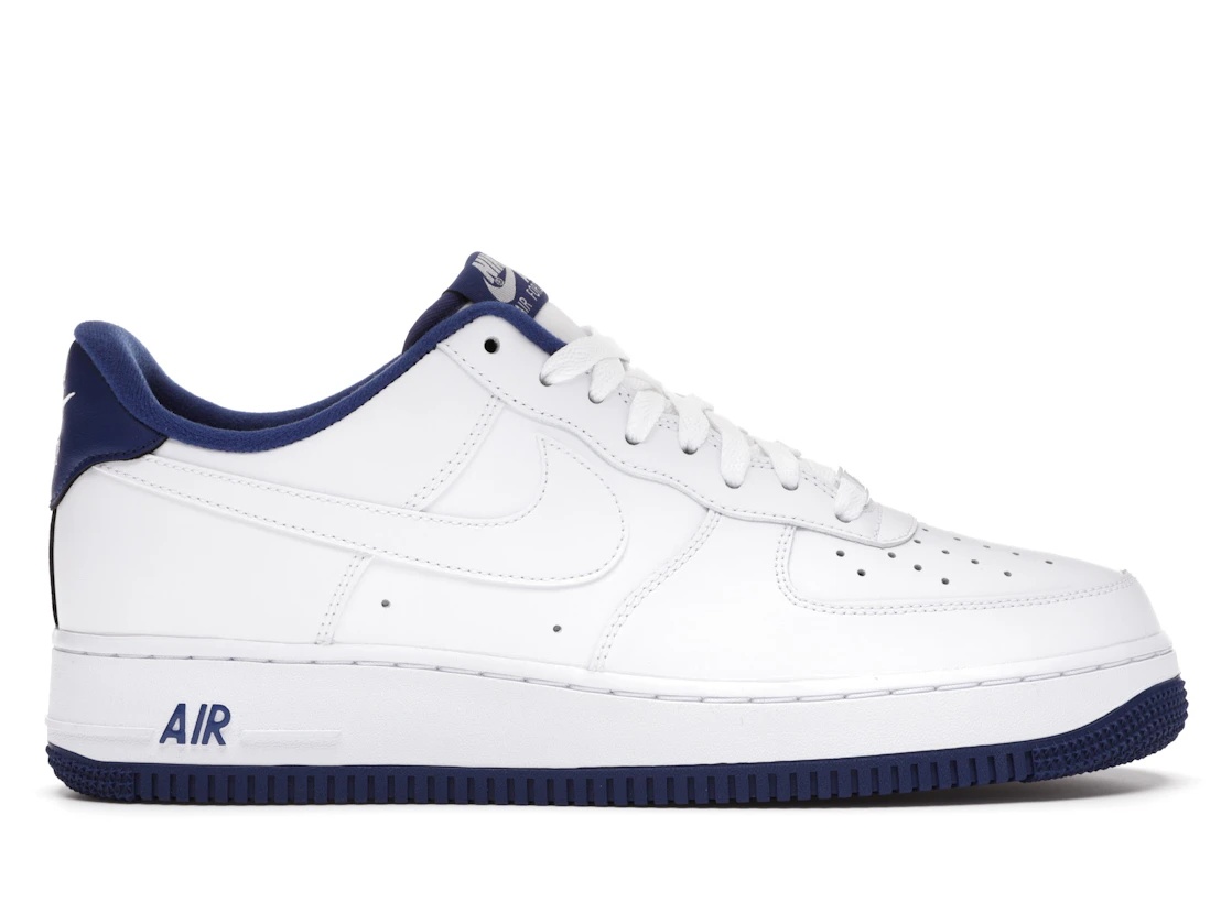 The Nike Air Force 1 Low White Deep Royal Blue dresses a classic silhouette in Crisp White and gives it eye popping hits of royal blue. This dual chromatic colorway lends undeniable style to this high-performance sneaker. This iteration of the Nike Air Force 1 Low-Top sports an upper constructed from tumbled white leather with tumbled white leather overlays. The classic side panel Nike Swoosh and eyestays are also white tumbled leather. White laces crossover a white nylon tongue. A bright white foam midsole with encapsulated Air provides support and cushioning. What our shoe experts love most about this sneaker are the hits of royal blue. The heel tab, tongue tag, and insoles are all royal blue with Crisp White branding. The sock liner, Air branding on the midsole, and rubber outsole are also blue. The Nike Air Force 1 Low White Deep Royal Blue was released on December 15th, 2019, and sold for a retail price of $90. - Style CD0884-102 - Colorway White/Deep Royal Blue-White - Retail Price 90 - Release Date 2019-12-15 - Featured false - Product Line Nike Air Force