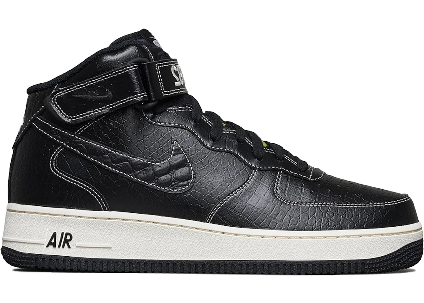 The Nike Air Force 1 Mid LX Our Force 1 is an iteration of the Air Force 1 sneaker. The Air Force 1 Mid LX Our Force 1 features a mid-top silhouette that utilizes a Velcro strap across the ankle. The upper of the shoe is crafted from leather and is adorned with laser-cut patterns all around. It also features a cushioned midsole with Nike Air technology and a durable rubber outsole with a circular traction pattern. In addition, the shoe includes two Nike Swooshes on both sides and the Nike label on the tongue and heel. The collar and tongue are also padded, and the laces are black and flat. We think what sets the Nike Air Force 1 Mid LX Our Force 1 apart is its color palette. The sneaker's upper boasts a black and Pale Ivory shade. The shoe was released on June 14th, 2022, at a retail price of $110. - Style DV1029-010 - Colorway Black/Black/Pale Ivory - Retail Price 110 - Release Date 2022-06-14 - Featured false - Product Line Nike Air Force
