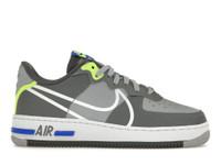 The Nike Air Force 1 React Wolf Gray is a lifestyle shoe that combines a stylish eye-catching design with innovative Nike technology to provide the utmost comfort. The Wolf Gray Air Force 1 React is dressed in three shades of gray, including Wolf Gray, Smoke Gray and dark gray, with white, blue, and neon green accents. The leather and mesh upper sports a gray toebox with perforations. Nike Air branding is found on the heel counter, the midsole heel, and on the tongue. The backstay is stitched on in neon green and the medial heel has D/MS/X branding. Oversized Nike Swooshes in white are on both sides are a focal point, along with a thick blue strip around the heel base. Our experts think that this shoe’s prominent feature is React technology in the drop-in foam cushioned insole. React cushioning which includes an Air bag on the heel is responsive, durable, and lightweight. Innovation at its best. The Nike Air Force 1 React Wolf Gray debuted on January 17th, 2020, and sold at retail price of $120. - Style CD4366-002 - Colorway Wolf Grey/White-Smoke Grey-Dark Grey - Retail Price 120 - Release Date 2020-01-17 - Featured false - Product Line Nike Air Force