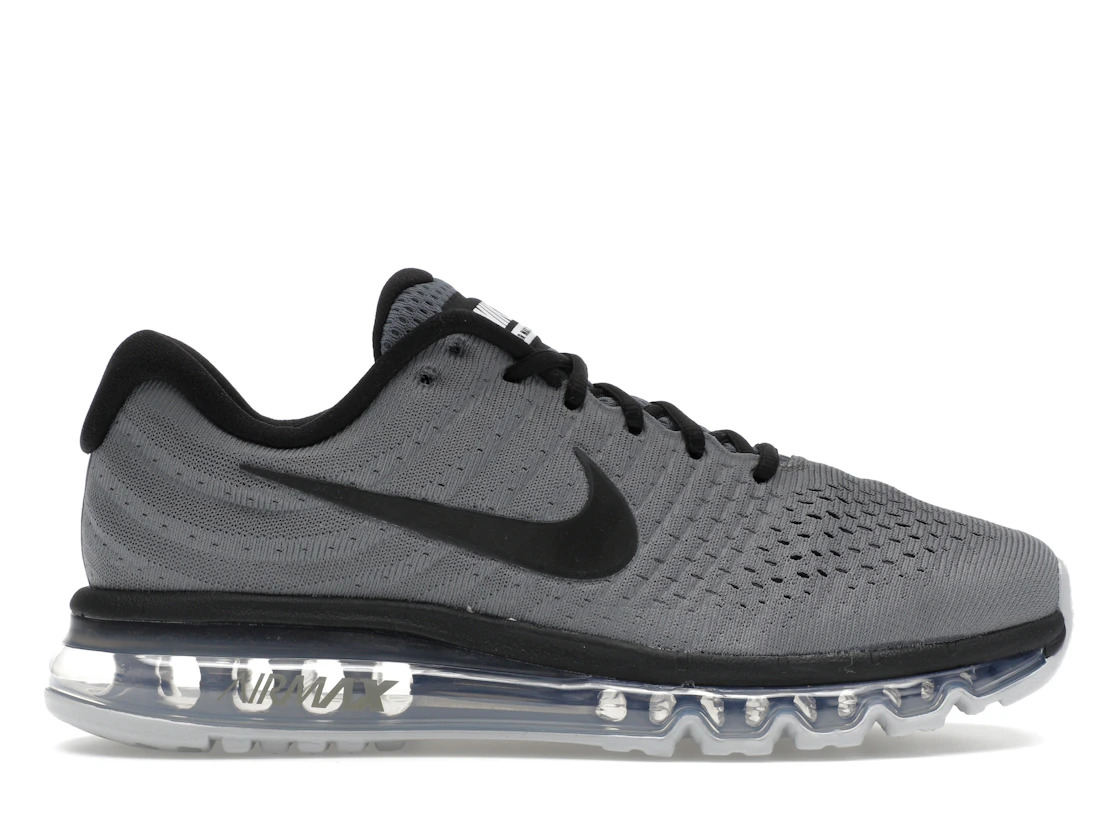 The cool grey black Nike Air Max 2017 comes with a tonal upper with synthetic overlays and reflective accents that are on top of a white foam midsole with a full-length visible Max Air unit for optimized running.The cool grey black Air Max 2017 by Nike pairs cool grey Flymesh panels with black molded synthetic overlays that give extra support. The one-piece upper includes ventilated mesh zones at the forefoot and heel for airflow. There's a full-length Max Air unit in a Cushlon foam midsole on top of a rubber Waffle outsole for long-lasting traction across surfaces.One of the things we love about the cool grey black Nike Air Max 2017 is its molded foam midfoot wrap, which hugs the foot for support during sideways movement. We also appreciate the Cushlon foam layer under the visible Air unit, which helps with heel-to-toe transitions while staying as responsive as possible. This shoe retailed at $210 when it was released on December 1, 2023. - Style 849559-011 - Colorway Cool Grey/Black/Pure Platinum - Retail Price 210 - Release Date 2023-12-01 - Featured false - Product Line Nike Air Max - Requester Andrew K - Uploaded By AK