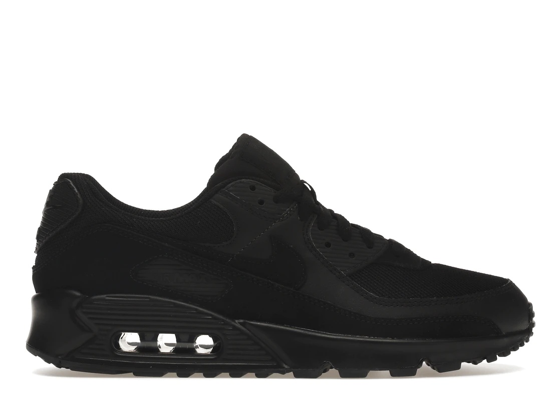 The Nike Air Max 90 Recraft Triple Black features a black sole, midsole, and body. It'ss made from a variety of materials, including plastic and suede, which give it a matte appearance. Part of the midsole is transparent and hollow to help keep it lightweight. The Air Max 90 Recraft in Triple Black by Nike was an original 1990 design of Tinker Hatfield. The sneaker also features a breathable mesh lining and a padded tongue. The Nike Air Max 90 Recraft Triple Black first became available for purchase in January of 2020. This model had a retail price of $120. - Style CN8490-003 - Colorway Black/Black-White-Black - Retail Price 120 - Release Date 2020-01-09 - Featured false