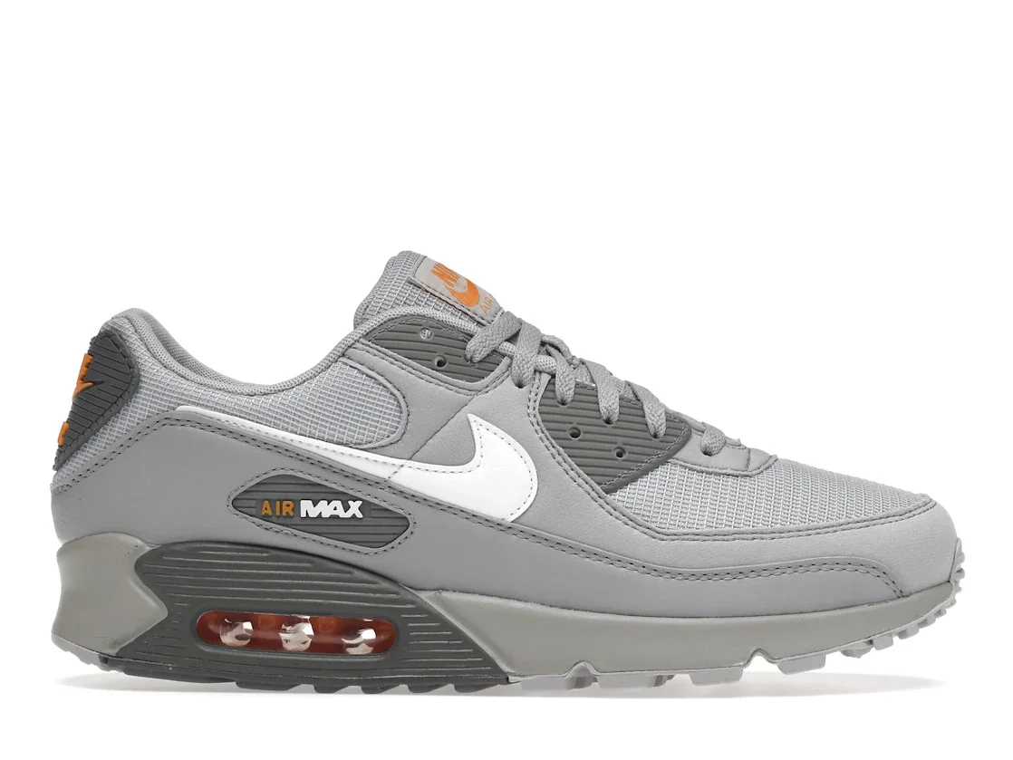 The Nike Air Max 90 Wolf Grey Kumquat Cool Grey White is a fashionable sneaker that presents an elegant fusion of colors and materials. The Nike Air Max 90 Wolf Grey Kumquat Cool Grey White upper showcases a Wolf Grey hue, accented by Cool Grey and white details. Various panels and layers adorn the shoe's upper, with mesh construction used for the mudguards, side panels, tongues, and spine. White accents the branding, including the Swooshes on the side panels, while the Nike logos on the tongues, insoles, and heels sport a Kumquat shade. A darker gray shade coats the entire rubber sole unit underneath. Our experts think the standout characteristic of the Nike Air Max 90 Wolf Grey Kumquat Cool Grey White lies in its distinctive color combination. The blend of Wolf Grey, Kumquat, Cool Grey, and white creates an aesthetically appealing design, making the shoe stand out. The sneaker debuted for $120 on November 13, 2021. - Style DR0145-001 - Colorway Wolf Grey/Kumquat/Cool Grey/White - Retail Price 120 - Release Date 2021-11-13 - Featured false - Product Line Nike Air Max