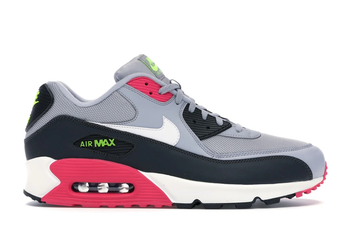Dressed in Wolf Grey, Volt, Rush Pink, and White color schemes, the Nike Air Max 90 Wolf Grey Rush Pink is a specific variation of Nike’s Air Max 90 sneakers. The Wolf Grey Rush Pink Nike Air Max 90 adopts a predominantly Wolf Grey mesh upper contrasting with Black accents on the lower panel and heel cap, Rush Pink eyelets, and a White-dressed side Swoosh. Its laces continue the Wolf Grey color scheme while its "Nike Air" and "Air Max" brandings appear in Volt color. The lower design includes a rubber midsole in white for impact absorption, the visible Air Max units for cushioning, and the treaded outsole to optimize friction on different surfaces. What we think is the standard feature of the Nike Air Max 90 Wolf Grey Rush Pink which was launched on 1st April 2019 with $110 as its recommended retail price is its breathable mesh upper that maximizes comfort during wear by allowing unrestricted flow of air. - Style AJ1285-020 - Colorway Wolf Grey/Rush Pink-Volt-White - Retail Price 110 - Release Date 2019-04-01 - Featured false - Product Line Nike Air Max
