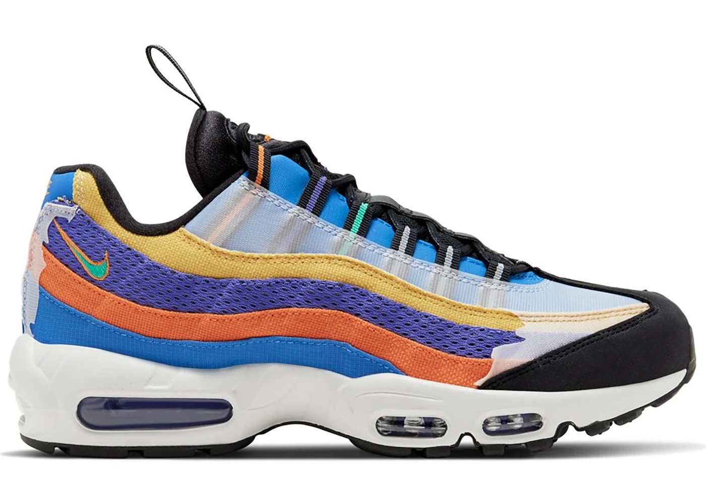 The Nike Air Max 95 BHM 2020 was released as another addition to Nike's Air Max 95 shoe line and is dressed in a Multi-Color/Photon Dust-Kinetic Green colorway inspired by African textile patterns and early 90’s street fashion. The Nike Air Max 95 BHM 2020 features an alternating design of the mesh, canvas, and synthetic materials at each overlay transition found at the base constructions. In addition, the medial and lateral paneling express dense cultural themes while "BHM" branding is embossed onto the tongue and embedded on top of the insoles. The sneaker is adorned with dense shades of teal, yellow, purple, red, and orange, mimicking the classical African garb. Something we love about the Nike Air Max 95 BHM 2020 is its multicolored construction that brings coherent alternating designs of mesh, canvas, and synthetic schemes. The Nike Air Max 95 BHM 2020 was released at a retail price of $180 on February 19th, 2020. - Style CT7435-901 - Colorway Multi-Color/Photon Dust-Kinetic Green - Retail Price 180 - Release Date 2020-02-19 - Featured false - Product Line Nike Air Max