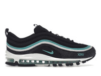 The Nike Air Max 97 Black Sport Turquoise is part of the "XXXV" Collection meant to celebrate Nike Air Max‘s 35th Anniversary. This shoe has a black mesh base highlighted by corduroy and denim overlays. A special "XXXV" is embroidered on the forefoot and printed on the insoles. Turquoise accents blend into the wavy overlays, the "XXXV" logo, and the mini Swoosh insignia. A black rubber outsole, a white midsole, "3JP Sport Turbo" branding, 3M reflective hits, and Swoosh jewel logos printed on the insoles and atop the tongue complete the sneaker’s design. The Nike Air Max 97 Black Sport Turquoise was released on the 25th of March, 2022. Originally, it retailed at $180. - Style DN1893-001 - Colorway Black/Sport Turquoise-Summit White - Retail Price 180 - Release Date 2022-03-25 - Featured false