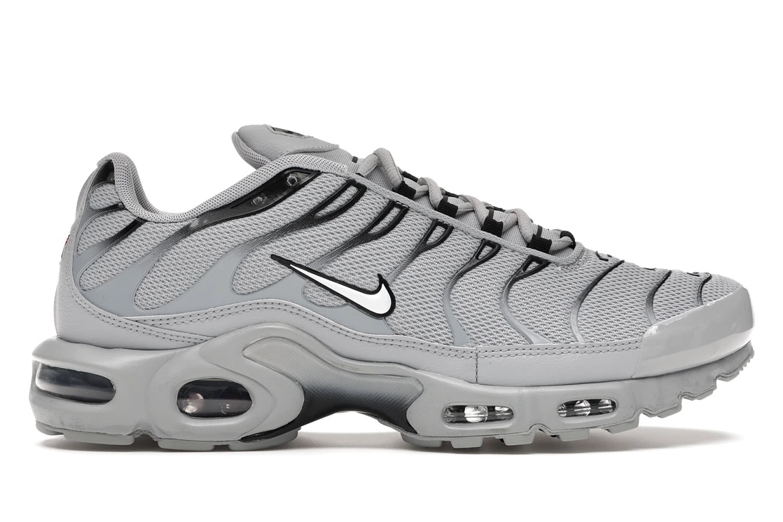 Nike's Air Max Plus Wolf Grey is part of a longstanding silhouette that draws heavily on nautical themes, according to original designer Sean McDowell. The Wolf Grey variant of the Air Max Plus seeks to balance this purposely exaggerated design with a relatively neutral colorway. The grey appears uniformly throughout the silhouette, and the palm tree bars coming up the sides of the shoe start out with a whitish-grey at the bottom that moves to black as the lines go up toward the top. For the midsole, the design is meant to evoke imagery of a whale's giant tail breaching the surface of the water. This design caps off with an outsole that includes Nike's flexible yet durable membrane of pressurized air. The Nike Air Max Plus Wolf Grey released in 2018 and retailed for $160. - Style 852630-021 - Colorway Wolf Grey/Black-White - Retail Price 160 - Release Date 2018-02-21 - Featured false