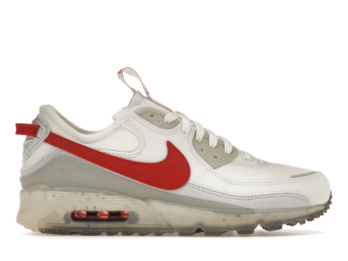 Nike released its Air Max Terrascape 90 Summit White and Red Clay, which highlights the use of sustainable materials. The Air Max 90 Terrascape consists of at least 20% recycled material by weight. The Nike Air Max Terrascape 90 is constructed with a white upper that features an oversized Red Clay Swoosh, and sits on a translucent midsole and air bubble unit. A newly designed red logo sits on top of the tongue and heel pull tab, allowing you to slide in and out of the sneaker comfortably. The Nike Air Max Terrascape 90 Summit White Red Clay released October 13, 2022 with a retail price of $140. - Style DQ3987-100 - Colorway Summit White/Pure Platinum/Wolf Grey/Red Clay - Retail Price 140 - Release Date 2022-10-13 - Featured false