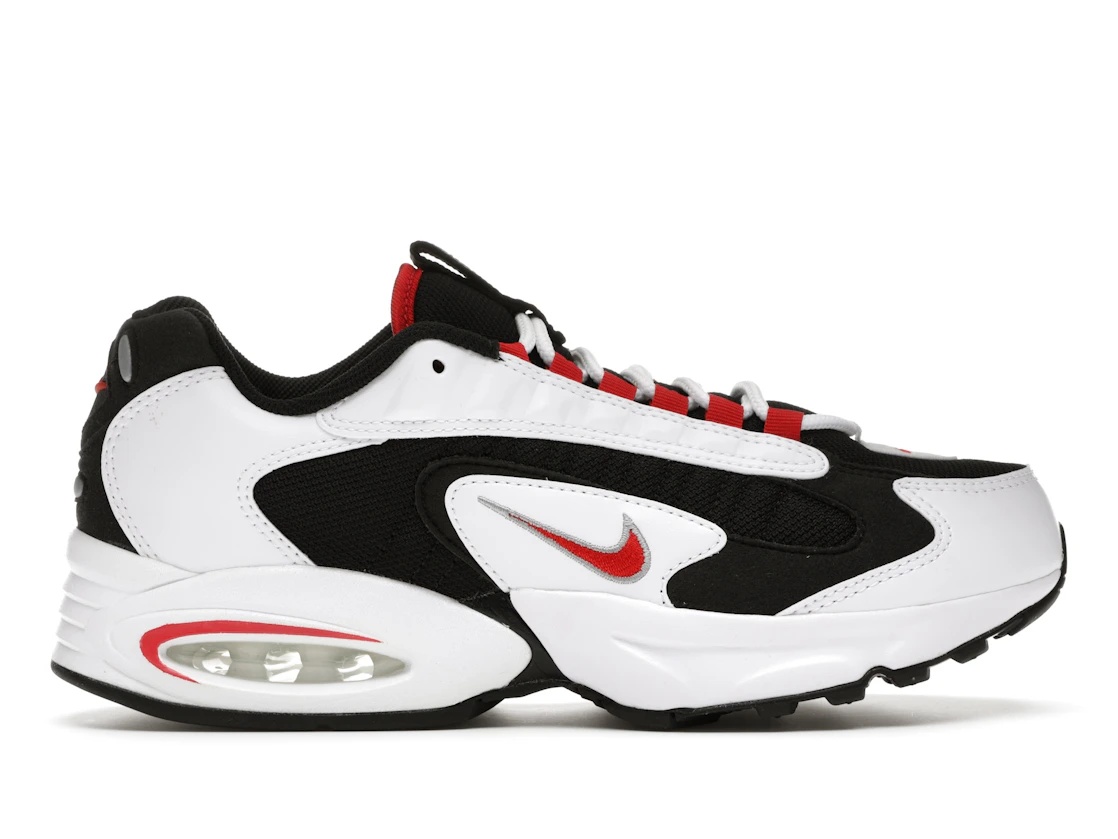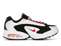 The Nike Air Max Triax 96 White Red Black is a 2019 release of a cult classic known as the Nike Air Max Triax 96 that was originally released in 1996. This iteration is presented in a white, university red, black, and metallic silver color combination. This sneaker sticks closely to the original design, and you’ll notice a plethora of textures and materials throughout. The upper of this Nike Air Max Triax 96 is balanced between smooth white leather and black nubuck and mesh. The midsole is primarily white, while black jumps in again on the tongue and liner. University red adds a vibrant touch and is seen on the mini Swoosh on the sides and the eyestay webbing. The visible Air unit in the heel is also adorned with a red Swoosh-like graphic element. StockX experts think that this shoe’s one-of-a-kind feature is its unique black-and-white overlay design that has just the right amount of red thrown into the mix, creating a feeling of movement and energy. The Nike Air Max Triax 96 White Red Black retailed for $130 when it debuted on December 5, 2019. - Style CD2053-105 - Colorway White/University Red-Black-Metallic Silver - Retail Price 130 - Release Date 2019-12-05 - Featured false - Product Line Nike Air Max