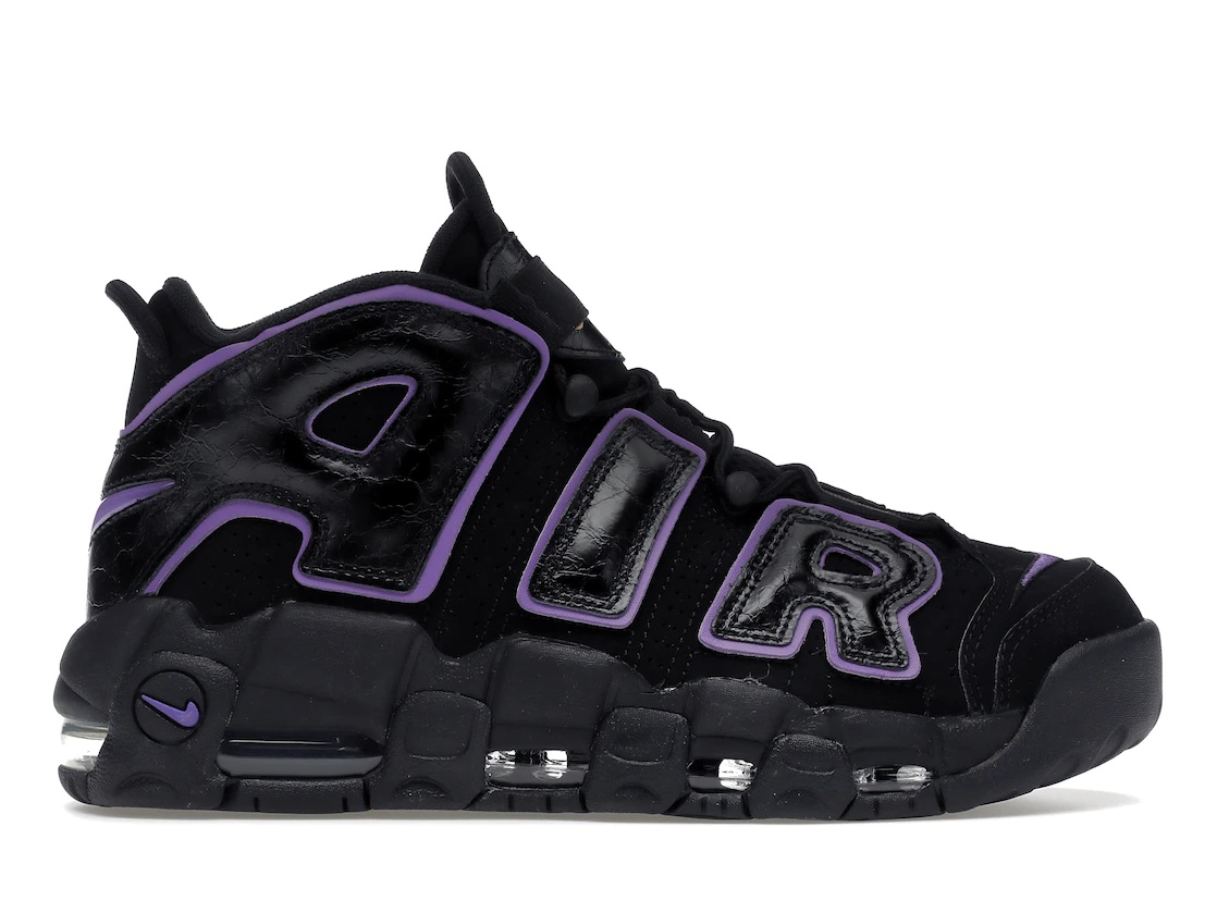 The Nike Air More Uptempo 96 Action Grape is one of the limited editions of the Nike Air More Uptempo sneakers featuring Black, Action Grape, White, and Metallic Gold color schemes. The Action Grape Nike Air More Uptempo 96 features AIR embroideries on the upper’s sides in Black and Action Grape colors and a Black lacing system across the tongue for an adjustable and secure fit. The heel and the tongue also feature a pull tab for easy putting on. The heel and the toe box also showcase Nike Swoosh dressed in Action Grape. The lower design features the treaded rubber midsole dressed in Black for optimized traction and grip on various surfaces during daily wear. What we consider the special feature of the Nike Air More Uptempo 96 Action Grape is its full-length Air-Sole units that complement the rubber midsole in providing support and comfort through an energy return and impact absorption. The sneaker was released on August 27th, 2022 at $175. - Style DV1879-001 - Colorway Black/Action Grape-White-Metallic Gold - Retail Price 175 - Release Date 2022-08-27 - Featured false