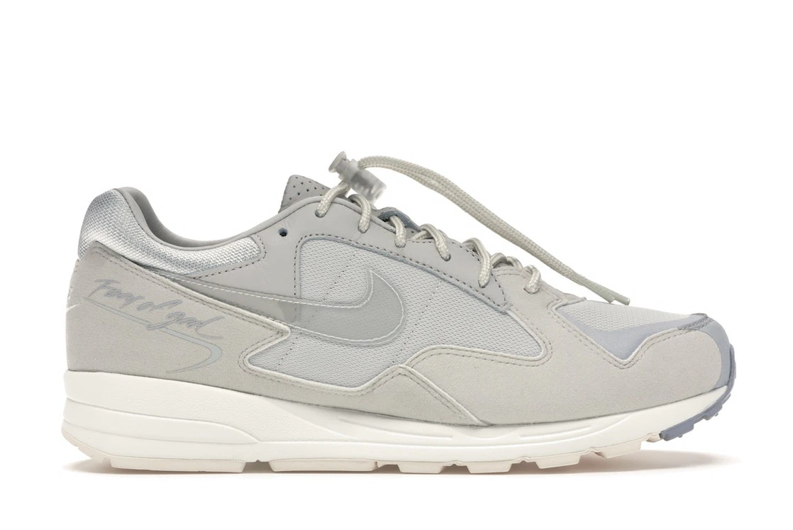 The Nike Air Skylon 2 Fear of God Bone is toned in a mixture of four major colors; pearl, clear, vast grey, and summit white. The upper of this Fear of God Bone and Nike sneaker is made up of mesh, suede, and leather embellishments. A toggle lacing system, transparent Swooshes on the side panels, a perforated tongue, as well as stitched Fear of God logo on the lateral heel are all included on this shoe. Each insole features the "Air Fear of God" logo that finishes the appearance. The Nike Air Skylon 2 Fear of God Bone first entered the market on July 20th, 2019. It had $150 as the retail price. - Style BQ2752-003 - Colorway Summit White/Clear-Vast Grey-Pearl White - Retail Price 150 - Release Date 2019-07-20 - Included Accessories White Flat Laces, White Rope Laces - Featured false - Product Line Nike Fear of God