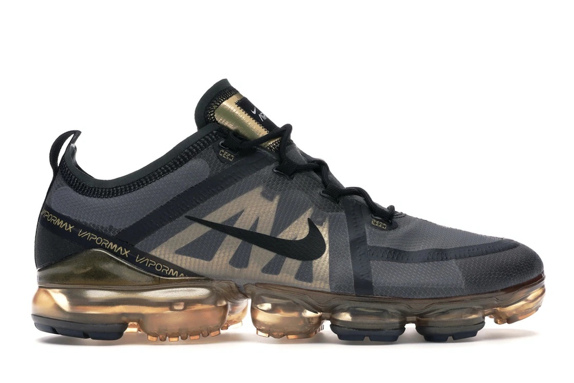 The Nike Air VaporMax 2019 Black Metallic Gold is an iteration of the Air VaporMax line. The 2019 Black Metallic Gold Nike Air VaporMax has a black upper that is constructed from a stretchy black fabric material that conforms to the foot for a comfortable and secure fit. The shoe’s metallic gold accents can be found on the soles, sides, and tongues. The sneaker includes a padded collar for added comfort and support, as well as a rubber outsole with strategically placed traction for optimal grip on various surfaces. We think that the Nike Air VaporMax 2019 Black Metallic Gold is especially notable for its innovative sole technology. The shoe features a full-length VaporMax Air unit that delivers ultimate comfort and responsiveness with every step. The VaporMax technology provides the feeling of walking on air, making it perfect for performance running, gym sessions, or casual activities. The Nike Air VaporMax 2019 Black Metallic Gold was released on January 10th, 2019, at a retail price of $190. - Style AR6631-002 - Colorway Black/Black-Metallic Gold - Retail Price 190 - Release Date 2019-01-10 - Featured false - Product Line Nike Air Max