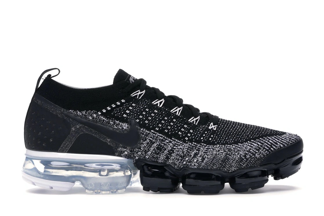 The Nike Air VaporMax Flyknit 2 Orca arrives in a black/black-white color palette. The Orca Nike Air VaporMax Flyknit 2 has an upper that is constructed from Flyknit, a lightweight and breathable material that provides a snug fit. The shoe's VaporMax cushioning system provides impact absorption and responsiveness. Individual air units are strategically positioned in the midsole to enhance responsive cushioning. In addition, the rubber outsole provides traction and sturdiness. The sneaker has a Nike Swoosh on either side and "VAPORMAX" lettering on the tongue. The VaporMax technology is one of the standout features of the Air VaporMax Flyknit 2 Orca that we love. The shoe utilizes individual Air cushioning units strategically placed throughout the sole, providing a lightweight and responsive feel. This innovative cushioning system offers enhanced comfort and a bouncy, floating sensation. The Nike Air VaporMax Flyknit 2 Orca was released on March 1, 2019 and sold for a retail price of $190. - Style 942842-016 - Colorway Black/Black-White - Retail Price 190 - Release Date 2019-03-01 - Featured false - Product Line Nike Air Max