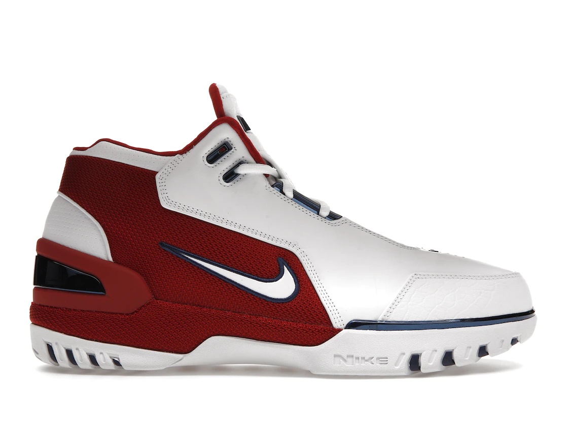 Nike offers an updated twist to the LeBron-inspired line with the Nike Air Zoom Generation First Game 2023. This time the sneakers feature Air Zoom cushioning and are dressed in a Midnight Navy, Varsity Crimson, and white colorway. The Nike Air Zoom Generation First Game has a leather and carbon fiber composition. A leather-constructed upper fuses with a mesh panel decked out in red. The sneaker is embroidered with a white Swoosh, red trims on the sock liner, and a black Zoom Air cushioned sole unit. This iconic silhouette that LeBron James wore to his first home game for the Cavaliers stays true to the original sneaker with LeBron’s debut date decorated in gold on the inside collar. What's the outstanding feature of the First Game sneakers? Of course, for our experts, it's the white, Midnight Navy, and Crimson colorway that creates an attention-grabbing style. The sneakers paired with any merch can up your street cred. The Nike Air Zoom Generation First Game 2023 was released on March 21st, 2023 and retailed at $180. - Style DM7535-101 - Colorway White/White-Midnight Navy-Varsity Crimson - Retail Price 180 - Release Date 2023-03-21 - Featured false - Source merchandising-international-personal - Uploaded By RK
