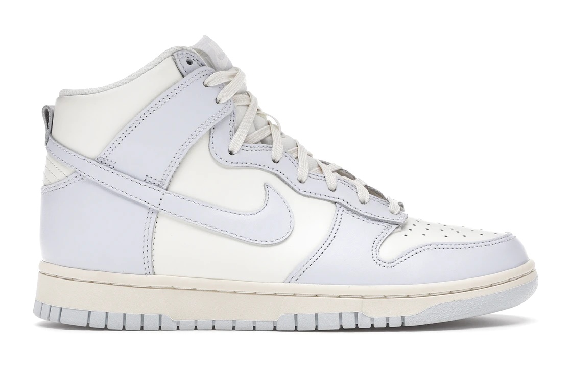 The Nike Dunk High Sail Football Grey for women (W) comes in a neutral look thanks to its retro basketball construction. The Nike Dunk High Sail Football Grey (W) upper is crafted from white leather and finished off in an off-white base, on which rests several subtle pale blue overlays that match the Swoosh branding. The perforated toe box provides breathability, while the padded mesh collar and nylon tongue deliver a comfortable fit. The cream midsole supports your feet, and the concentric rubber outsole offers traction. The Nike Dunk High Sail Football Grey (W) was released in February 2021 and retailed for $125. - Style DD1869-102 - Colorway Sail/Football Grey-Pale Ivory - Retail Price 125 - Release Date 2021-02-25 - Featured false