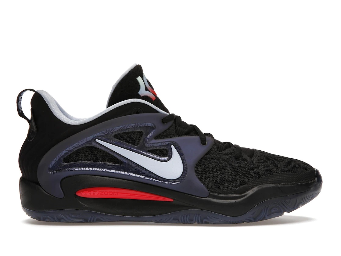 The Nike KD 15 My Roots is an iteration of the Nike KD 15 dressed in Black, Royal Tint, and Light Crimson. A low-cut sneaker, the Nike KD 15 Black Royal Tint Light Crimson features a jacquard mesh upper in black, detailed with navy blue midfoot caging, thin overlays to help resist abrasion along the toe, a branded pull tab, and a branded tongue. The midfoot caging on the shoe's lateral side holds a light blue Nike Swoosh, while the one on the medial side holds an inverted red Nike Swoosh. Beneath this shoe's upper is a full-length foam and a visible Zoom Air Strobel unit that offers a dual layer of cushioning that's smooth and responsive. A patterned rubber outsole with several contoured ridges that bend in multiple directions provides traction for every move and rounds out its design. What we love about the Nike KD 15 My Roots is that it enables you to maintain control on the court, regardless of your movement. This shoe was released on November 16, 2022, for $160. - Style DC1975-004/DM1054-004 - Colorway Black/Royal Tint-Light Crimson - Retail Price 160 - Release Date 2022-11-16 - Featured false