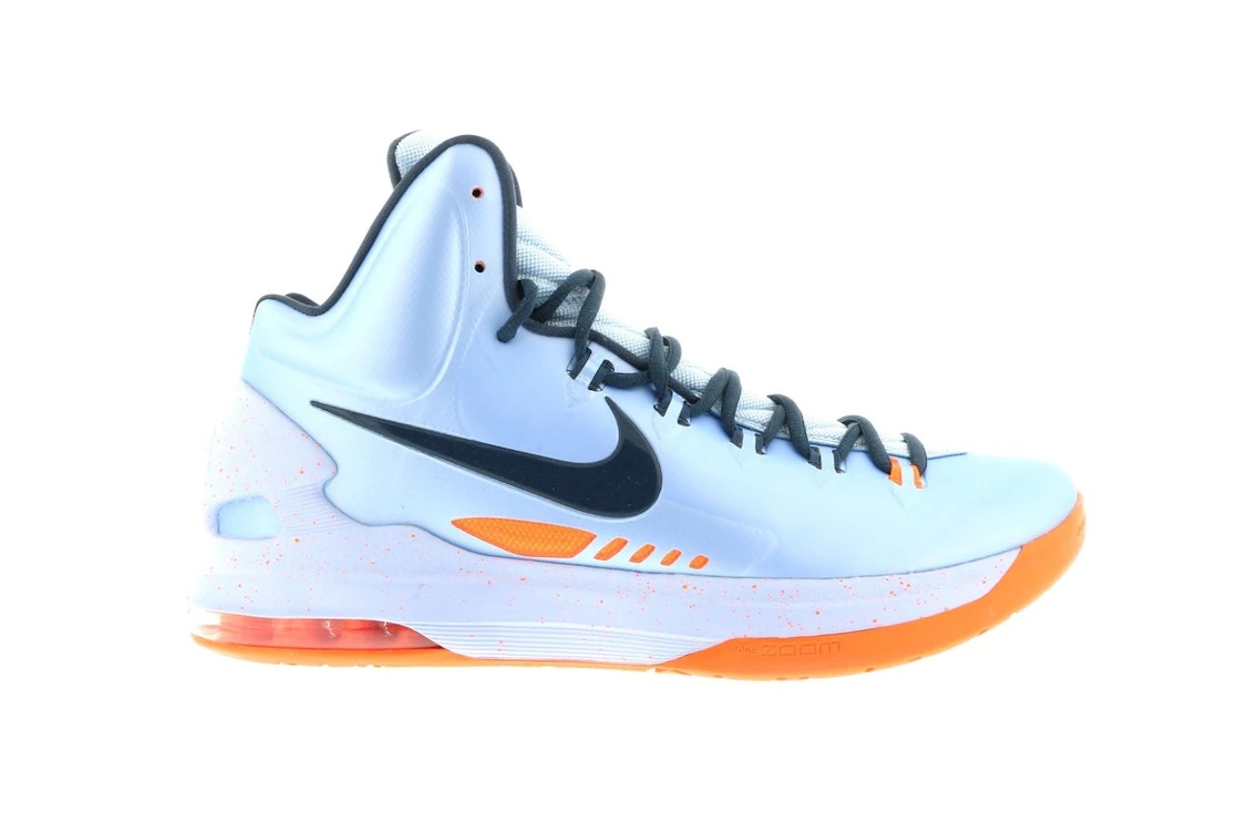 - Style 554988-400 - Colorway Ice Blue/Squadron Blue-Total Orange - Retail Price 115 - Release Date 2013-02-06 - Featured false - Product Line Nike KD
