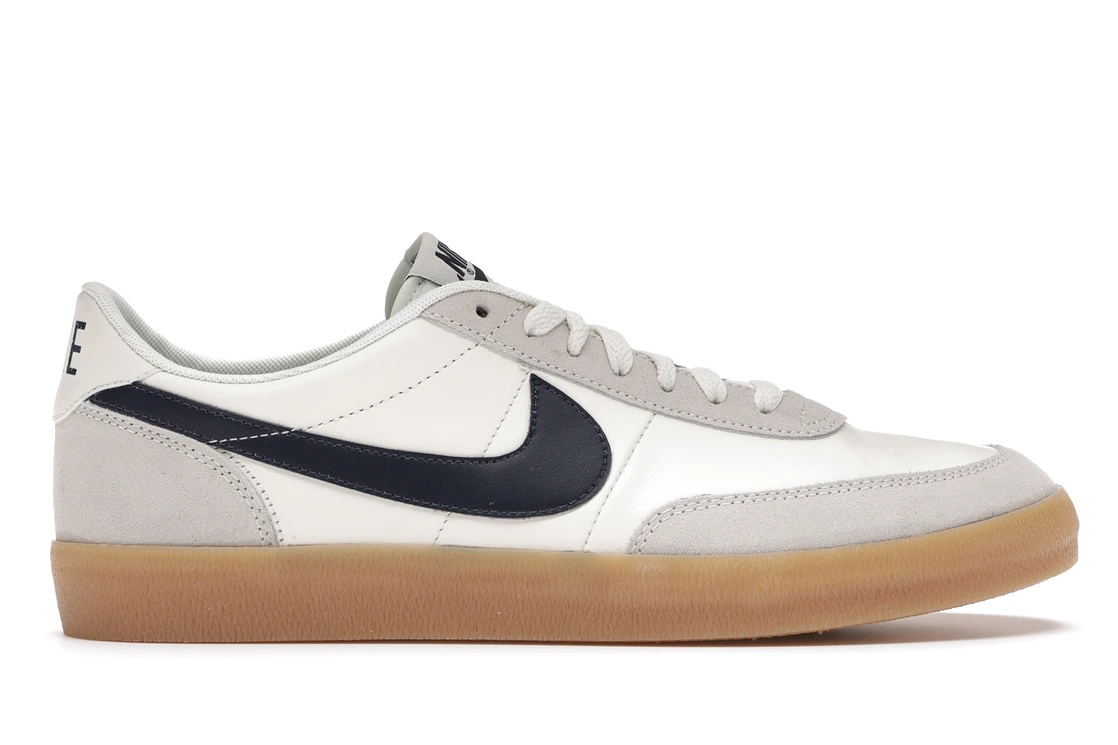 In 2017, the re-release of the Nike Killshot 2 J Crew Sail Midnight Navy marked the return of one of Nike's most popular exclusives. The history of the Killshot goes all the way back to the 1970s, but Nike launched the Midnight Navy colorway in 2012 as part of its collaboration with J.Crew. Originally, the Nike Killshot 2 J Crew Sail Midnight Navy was exclusively available at J.Crew. However, Nike re-released the Midnight Navy five year later globally. The Nike Killshot 2 J Crew Sail Midnight Navy features a retro design that's reminiscent of Nike's original shoes from the 1970s. The shoe starts with a thick tan sole with an aged, weathered appearance and then leads to a clean, off-white upper with gray accents and a navy Swoosh logo. Instead of rubber, the Nike Killshot 2 J Crew Sail Midnight Navy comes with a gum sole with a textured underside to complete the retro look. For a final touch, "NIKE" is printed on the heel in weathered navy letters to suggest that this sneaker has seen a lot of history. The Nike Killshot 2 J Crew Sail Midnight Navy released in February of 2017 and retailed for $90. - Style 432997-107 - Colorway Sail/Midnight Navy-Gum Yellow - Retail Price 90 - Release Date 2017-02-25 - Featured false