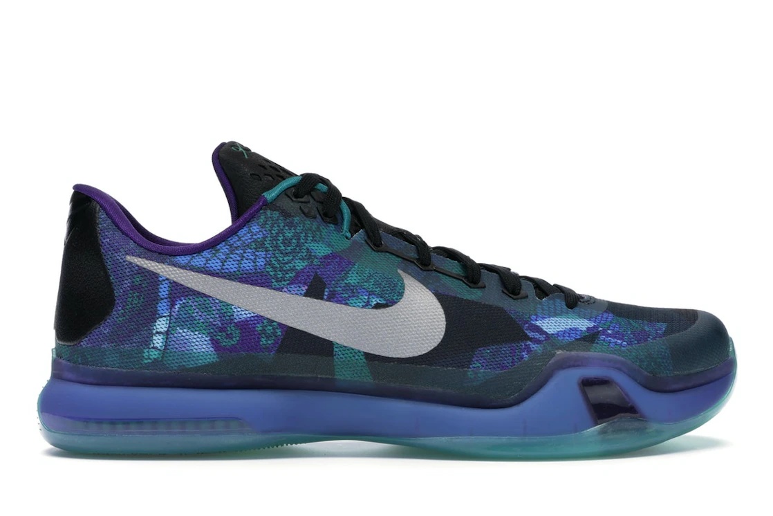 The Nike Kobe 10 Peach Jam is a vibrant celebration of Kobe Bryant's influence on the next generation of basketball talent, featuring a colorway of emerald glow, reflect silver, and court purple. This edition, designed for the prestigious Peach Jam basketball tournament, showcases the blend of performance and legacy. The Kobe 10 Peach Jam is tailored for athletes who aspire to stand out on the court, embodying the spirit of competition and Kobe's dedication to the growth of young players.With advanced cushioning technology and a seamless upper for comfort and durability, this sneaker supports the dynamic movements essential to basketball. The eye-catching colorway and tournament branding make it a collector's item, symbolizing the pursuit of excellence.Released on August 27, 2015, for $180, the Nike Kobe 10 Peach Jam has been celebrated for its exclusive design and connection to one of youth basketball's most competitive events. It's a tribute to Kobe's legacy as a player and mentor, designed to inspire the next wave of basketball stars. - Style 705317-305 - Colorway Emerald Glow/Reflect Silver-Court Purple - Retail Price 180 - Release Date 2015-08-27 - Featured false - Product Line Nike Kobe