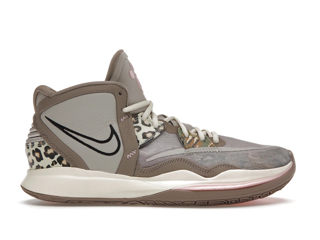 The Nike Kyrie Infinity Leopard Camo sneaker stealthily steps onto the court with a design inspired by the elusive nature of Kyrie Irving's gameplay. The light iron ore, black, and moon fossil colorway, adorned with a leopard camo pattern, evokes Irving's unpredictable moves and stealth-like agility.This sneaker is loaded with performance technology to accommodate quick pivots and explosive sprints. The leopard camo design isn't just for show; it's a representation of how Irving's moves can be as stealthy and sudden as a big cat on the prowl.Launching on July 26, 2022, for $140, the Nike Kyrie Infinity Leopard Camo brings a wild side to Irving's sneaker line, perfect for players who play with an untamed spirit and a clever approach. - Style CZ0204-006/DC9134-006 - Colorway Light Iron Ore/Black/Moon Fossil - Retail Price 140 - Release Date 2022-07-26 - Featured false - Product Line Nike Kyrie
