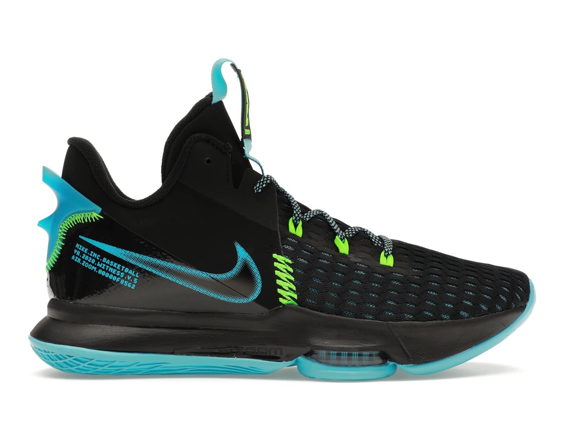 Step up your game with the Nike LeBron Witness 5 Black Light Blue Fury, designed to channel the unstoppable energy of LeBron James. This sneaker's black base is electrified with green strike and light blue fury accents, evoking the swift and forceful nature of LeBron's gameplay. Aimed at players who lead on the court with power and grace, this sneaker is a testament to James's indomitable spirit.The LeBron Witness 5 is constructed with a lightweight mesh and rigid frame for support, ensuring you can make those high-flying dunks with ease. The vibrant lagoon pulse details offer a burst of color, highlighting the sneaker's dynamic design.Launched on February 9, 2021, for $100, the Nike LeBron Witness 5 Black Light Blue Fury combines the King's court prowess with a style that demands attention, ensuring wearers feel ready to take on the challenge of any game. - Style CQ9381-004/CQ9380-004 - Colorway Black/Green Strike/Light Blue Fury/Lagoon Pulse - Retail Price 100 - Release Date 2021-02-09 - Featured false - Product Line Nike LeBron