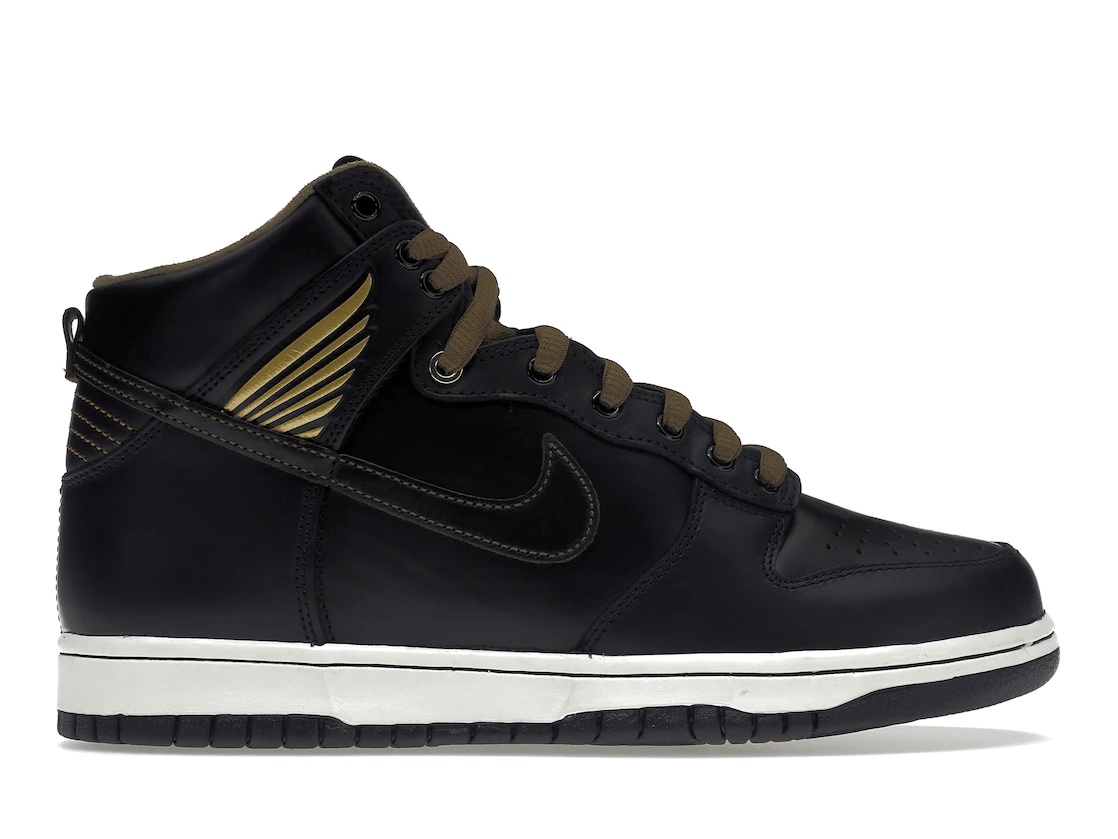 The Nike SB Dunk High Pawnshop Skate Co. Old Soul was designed as part of Nike’s skateboarding division to collaborate with creatives on the classic Dunk model. Crafted by Pawnshop Skate Co., this high-top silhouette arrives in a Black/Black-Metallic Gold colorway. The Nike SB Dunk High Pawnshop Skate Co. Old Soul is constructed with a sophisticated finish, brown premium and sporting black leather uppers, and golden details representing the So-Cal stake spectacle. Rich brown tones complete the toeboxes while medial Swooshes sit on the side. Standard black laces atop the tongues with top metallic eyelets and light brown suede liners contrast the upper. Other features include leather tongue tags, gild perimeter accents, black panels across the pair, and Pawnshop Skate Co.’s 'Wing & Wheel' logo printed on the ankle flaps and the dual-branded insoles. Something our experts think excels in the Nike SB Dunks Pawnshop Skate Co. Old Soul is the black-colored color code with golden details and high-quality leather construction material. The Nike SB Dunk High Pawnshop Skate Co. Old Soul was released at a retail price of $125 on January 13th, 2023. - Style FJ0445-001 - Colorway Black/Black-Metallic Gold - Retail Price 125 - Release Date 2023-01-13 - Included Accessories Brown extra laces, Yellow mixed-color extra laces - Featured false