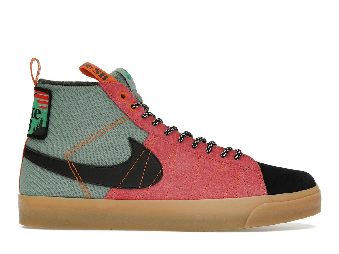 The Nike SB Zoom Blazer Mid PRM Acclimate Jade Smoke is part of the Nike skateboarding collection featuring durable suede and canvas materials on the upper and quarters. On its sole, this Nike SB Zoom Blazer Mid PRM has a solid vulcanized rubber outsole that extends to cover the lower part of the shoe. The upper has a black suede material. However, the quarter panels feature different builds. They start with sport spice suede that acts as an overlay for the eye stay but change to a jade smoke canvas near the heel. On the tongue is a lace-up closure with rope laces in a black and white intertwinement. What stands out in the Nike SB Zoom Blazer Mid PRM Acclimate Jade Smoke? We like the skating-oriented finish on this shoe, with a sporty heel tab and lateral collar pull tab in bright orange adorned by Nike SB branding. The sneaker had a $110 retail price during its December 3rd, 2021 release date. - Style DC8903-301 - Colorway Jade Smoke/Black-White-Sport Spice-Lucky Green - Retail Price 110 - Release Date 2021-12-03 - Featured false - Product Line Nike SB