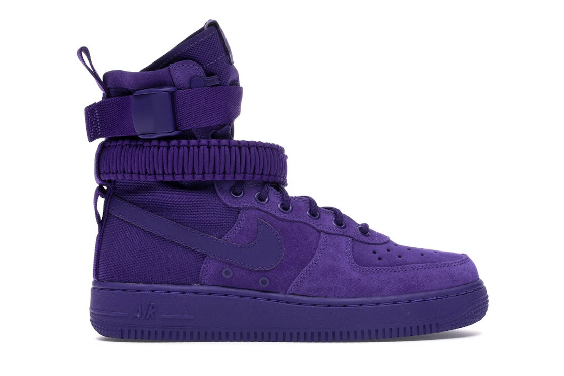 The Court Purple-colored Nike SF Air Force 1 High Court Purple is a unique variation of Nike’s SF Air Force 1 High brand of sneakers. The Nike SF Air Force 1 High Court Purple sneaker’s design feature a fully Court Purple colored leather upper. Besides its Tripple Court Purple color scheme, the sneaker’s design also features perforations on its toe box to allow for free air entry and exit during wear, a primary and secondary lacing system in the same color to ensure a comfortable fit during wear, a pull tab on the heel to make it easy to wear, and the lateral Nike Swoosh on both sides. Its base features a treaded rubber sole for cushioning, support and traction. Completing the design is the AIR embroidery on the sole unit’s heel. The Nike SF Air Force 1 High Court Purple sneaker was released on 18th May 2018 with a recommended retail price of $180. - Style 864024-500 - Colorway Court Purple/Court Purple - Retail Price 180 - Release Date 2018-05-18 - Included Accessories Flat Purple Strap, Stretch Purple Strap - Featured false - Product Line Nike Air Force