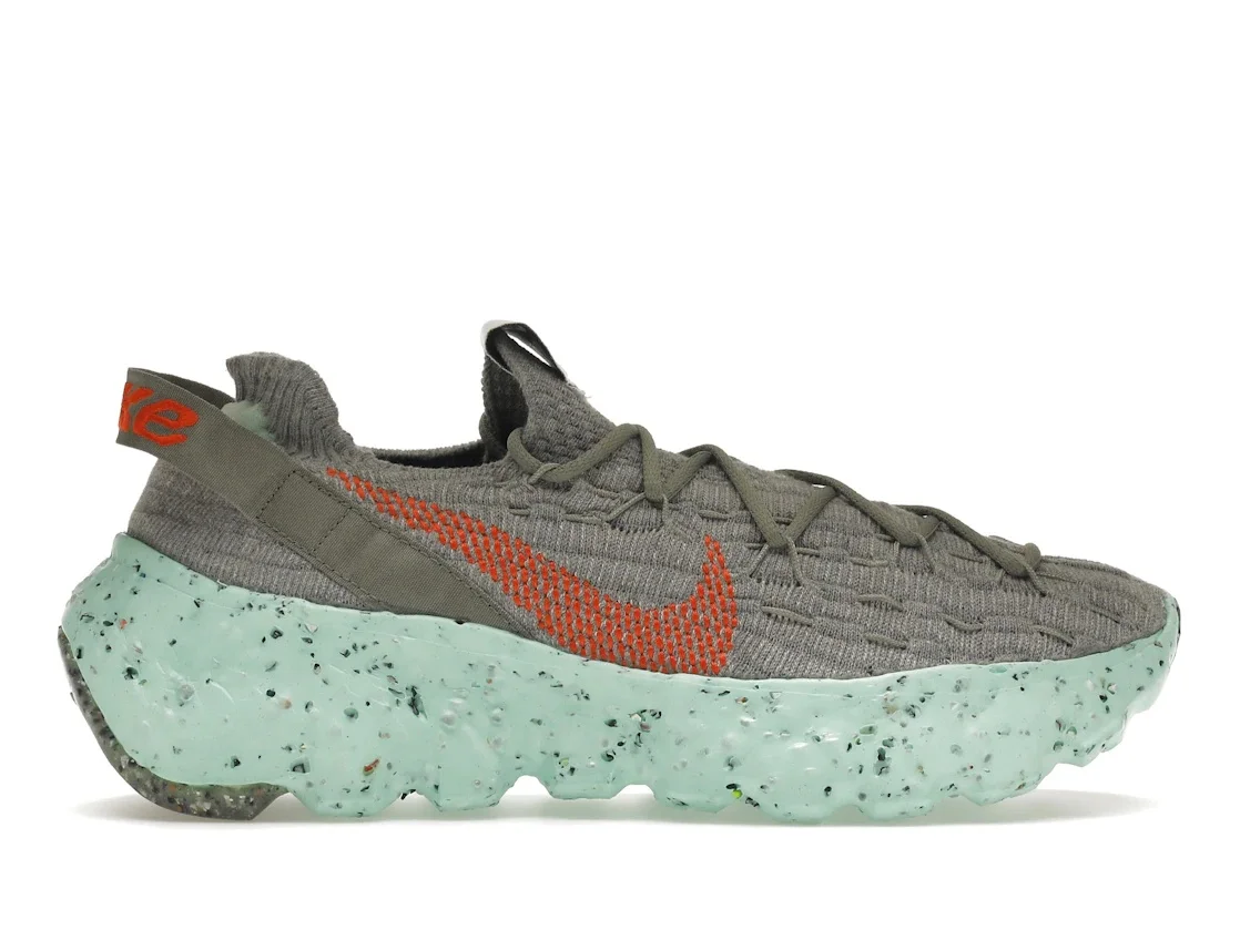 The Nike Space Hippie 04 Green Glow is a brightly colored model that is primarily made out of breathable fabric and plastic. It comes from the Space Hippie collection, which is an ode to outer space, specifically the planet of Mars. This Nike Space Hippie model has a speckled gray sole with a bright green glow in the dark midsole. The body of the shoe is primarily made out of gray fabric. The famous Nike ‘Swoosh’ logo appears on the side of the shoe in red fabric. There are gray fabric shoelaces that overlay the matching gray body of the shoe. A feature of the Nike Space Hippie 04 Green Glow that our experts find to be especially useful is the gray pull tab on the back of the shoe’s heel, which features ‘Nike’ in a bright red color. This shoe model was first made available for purchase in May of 2021, and it had a starting retail price of $130. - Style CZ6398-020 - Colorway Grey/Orange/Green Glow - Retail Price 130 - Release Date 2021-05-24 - Featured false - Product Line Nike Space Hippie