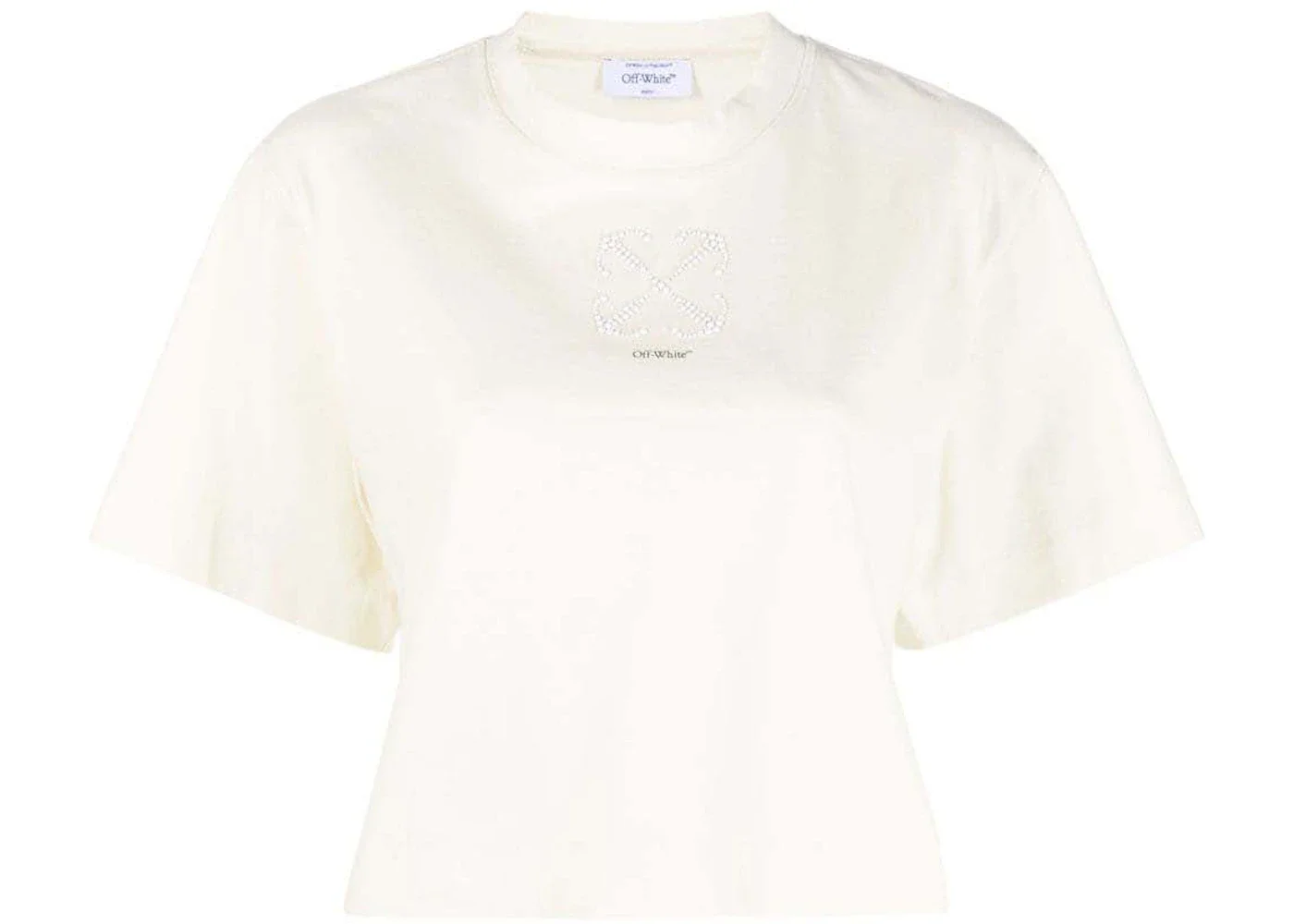 OFF-WHITE Arrows-Motif Embellished Cropped T-shirt Ivory White