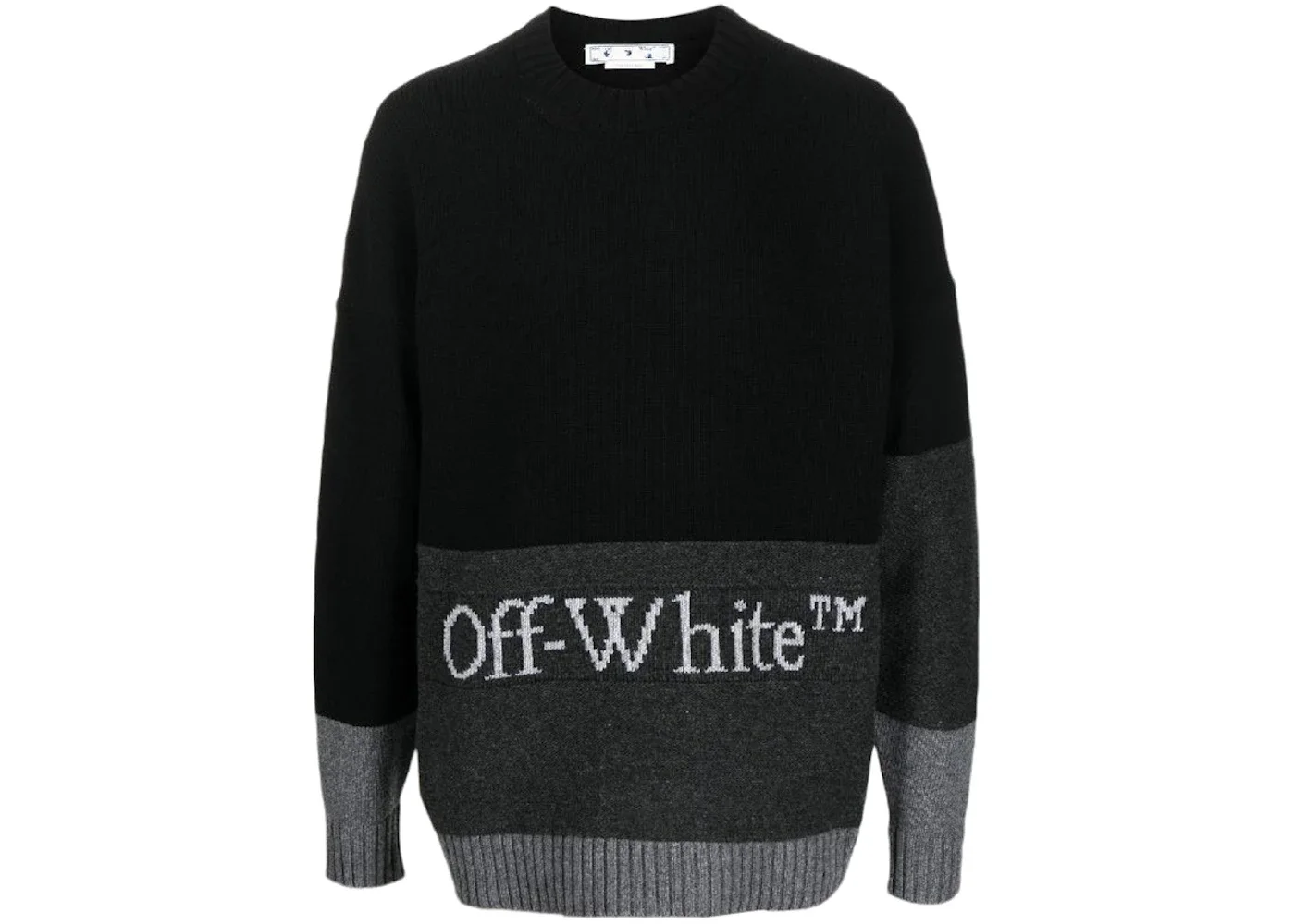 OFF-WHITE Blocked Intarsia-Logo Wool Crew Sweater Black/Grey