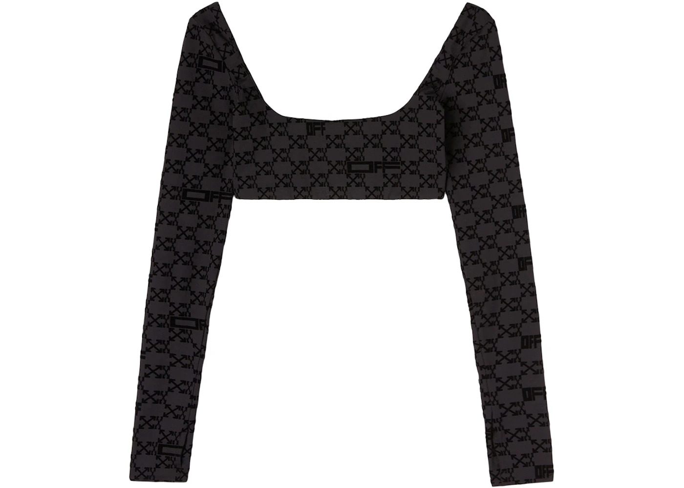 OFF-WHITE Flock Monogram L/S Crop Top Black
