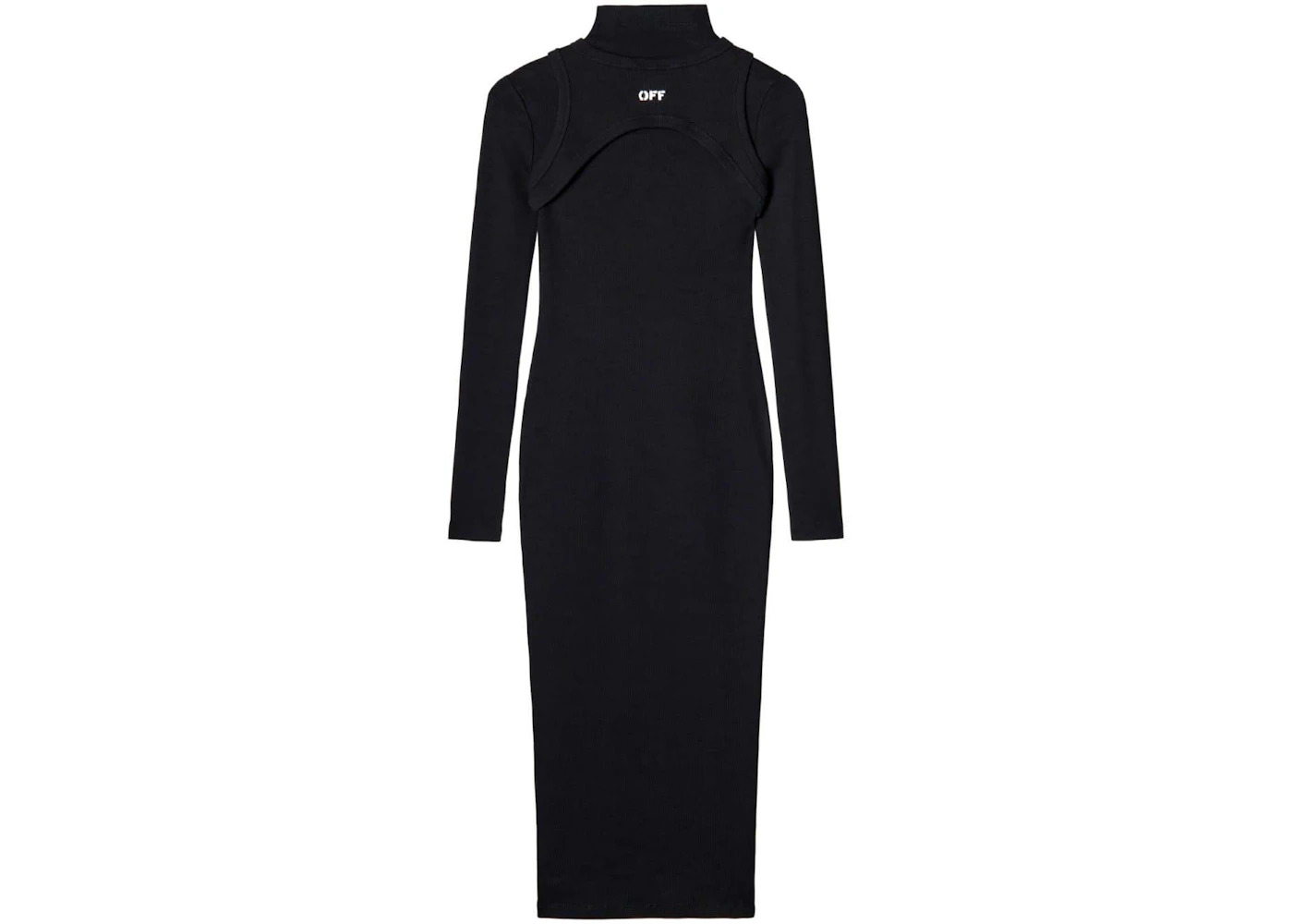 OFF-WHITE Ribbed Turtleneck Midi Dress Black
