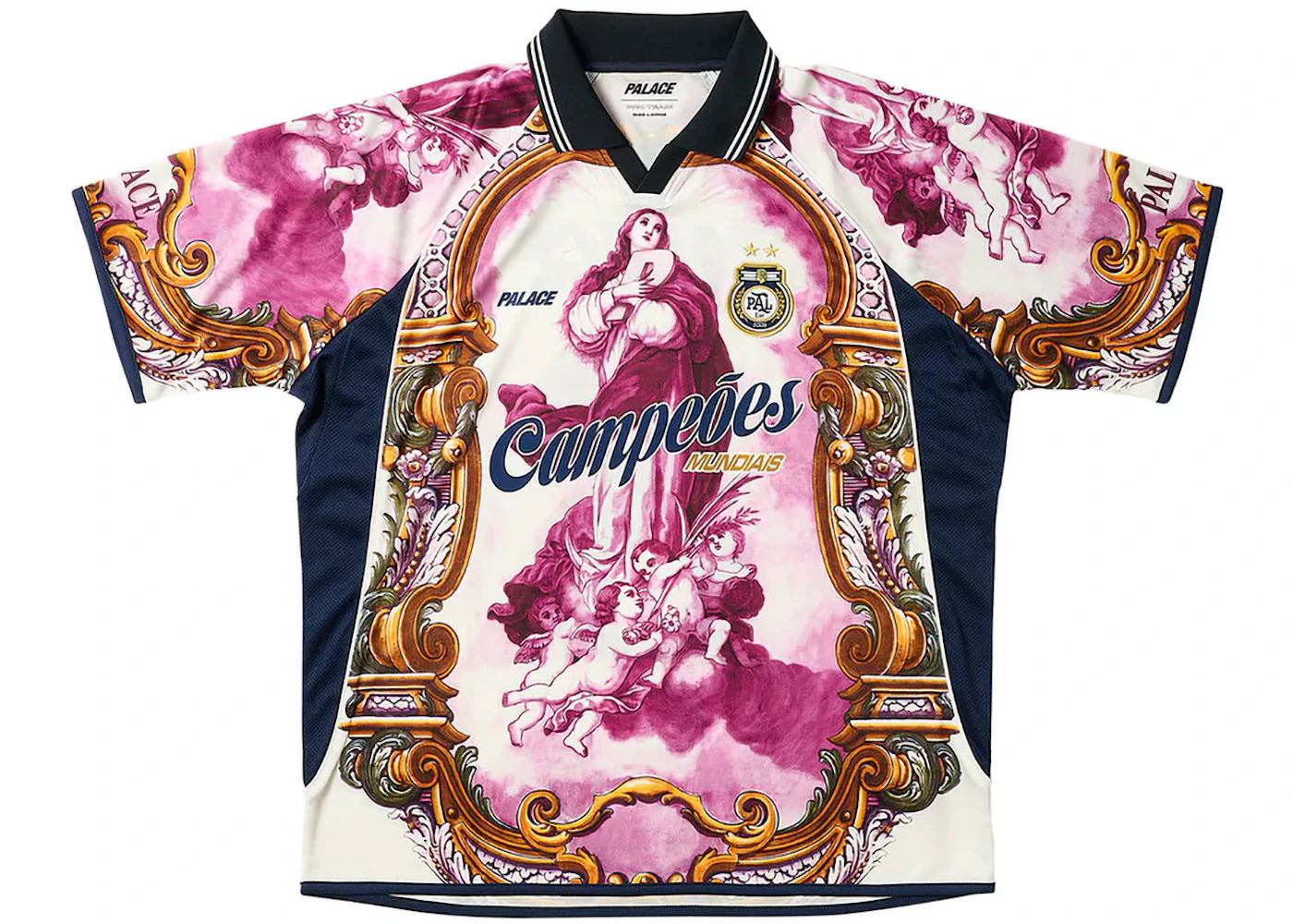 The Palace Holy Grail Jersey in burgundy makes a striking statement, fusing athletic wear with streetwear edge in a bold, attention-grabbing design that exudes confidence and style. Palace has been a major player in the streetwear scene since its inception, consistently pushing the boundaries of fashion and function. The burgundy Palace Holy Grail Jersey is a prime example, featuring a rich, bold colorway and a dapper design that blends athletic wear with high-fashion sensibilities. With its premium materials and attention to detail, this jersey showcases Palace's commitment to quality and style. We appreciate the Palace Holy Grail Jersey's thoughtful design elements, particularly the burgundy colorway's subtle fade effect, which adds depth and visual interest to the garment. Additionally, the jersey's relaxed fit and curved hem provide a flattering silhouette, making it a stylish and functional choice for both on-field performance and everyday wear. When this jersey was released back on September 3rd, 2024, its retail price was $128. - Season FW23 - Color Burgundy - Release Date 2023-11-03 - Retail Price 128 - Featured false - Uploaded By LL