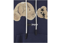Palm Angels Bear Print Sprayed Logo Hoodie Navy Blue/Brown