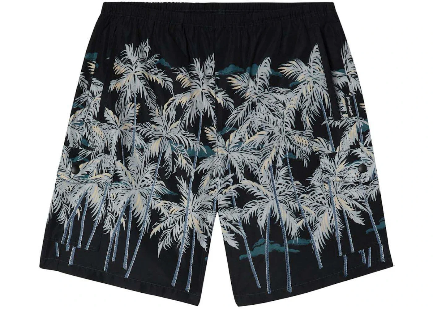 Palm Angels Palm Tree Print Swim Shorts Black/White