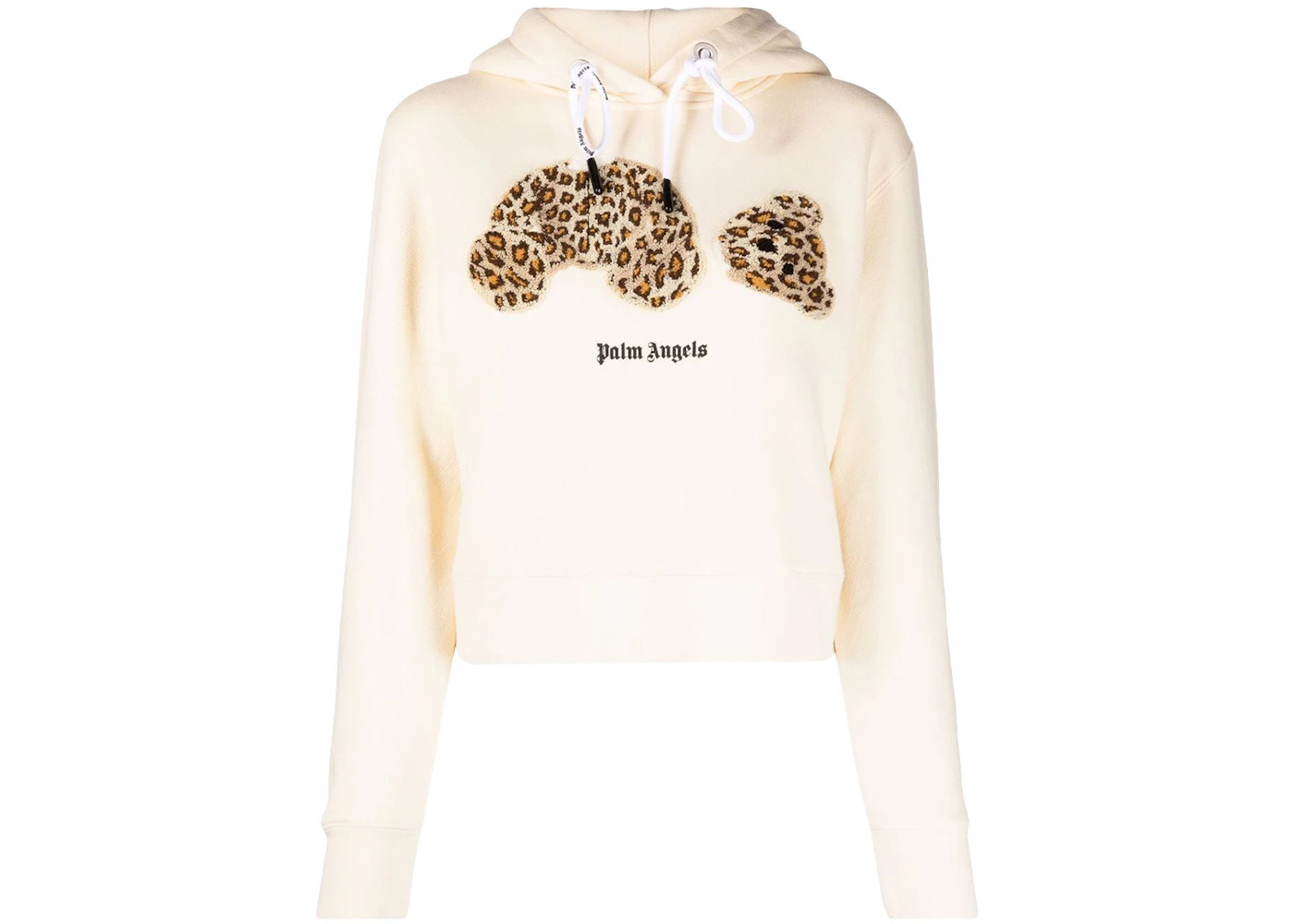 Palm Angels Womens Leopard Bear Hoodie Off White/Brown