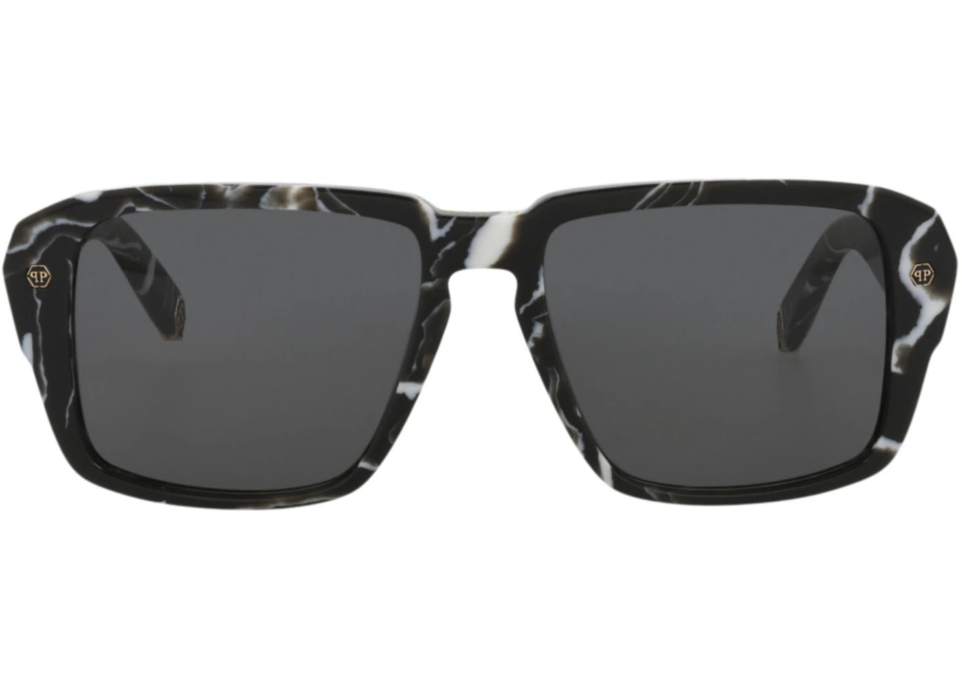 Philipp Plein Square-Frame Acetate Sunglasses Black Black Smoke (SPP081-55-0Z21)