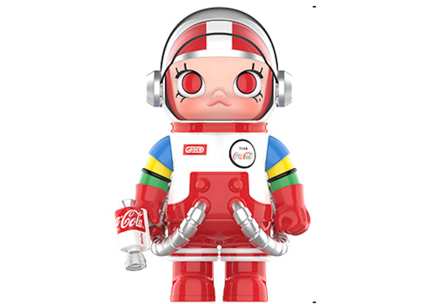 The Pop Mart Mega Space Molly Team Coca-Cola 400% stands nearly 12 inches tall. It is made of PVC/ABS plastic for softness and flexibility. This is an adorable Molly doll from Pop Mart's vinyl toy collection. Like other Molly dolls, it has eyes as big as saucers, long black eyelashes, and blushing cheeks. Molly is dressed and ready for a trip to outer space. It wears a colorful space suit, which includes a helmet, gloves, boots, and an energy tank. The doll holds a space camera with a Coca-Cola logo in its hands for exploration. The Pop Mart Mega Space Molly Team Coca-Cola 400% has movable parts for posing. Our team is most impressed with the Coca-Cola logo featured on Molly's space suit and the back of the energy tank. The Molly doll was released by Pop Mart on July 19, 2024, and retailed for $240. - Product Line Mega Space Molly - Release Date 2024-07-19 - Retail Price 240 - Dimensions 300MM - Featured false - Uploaded By VL
